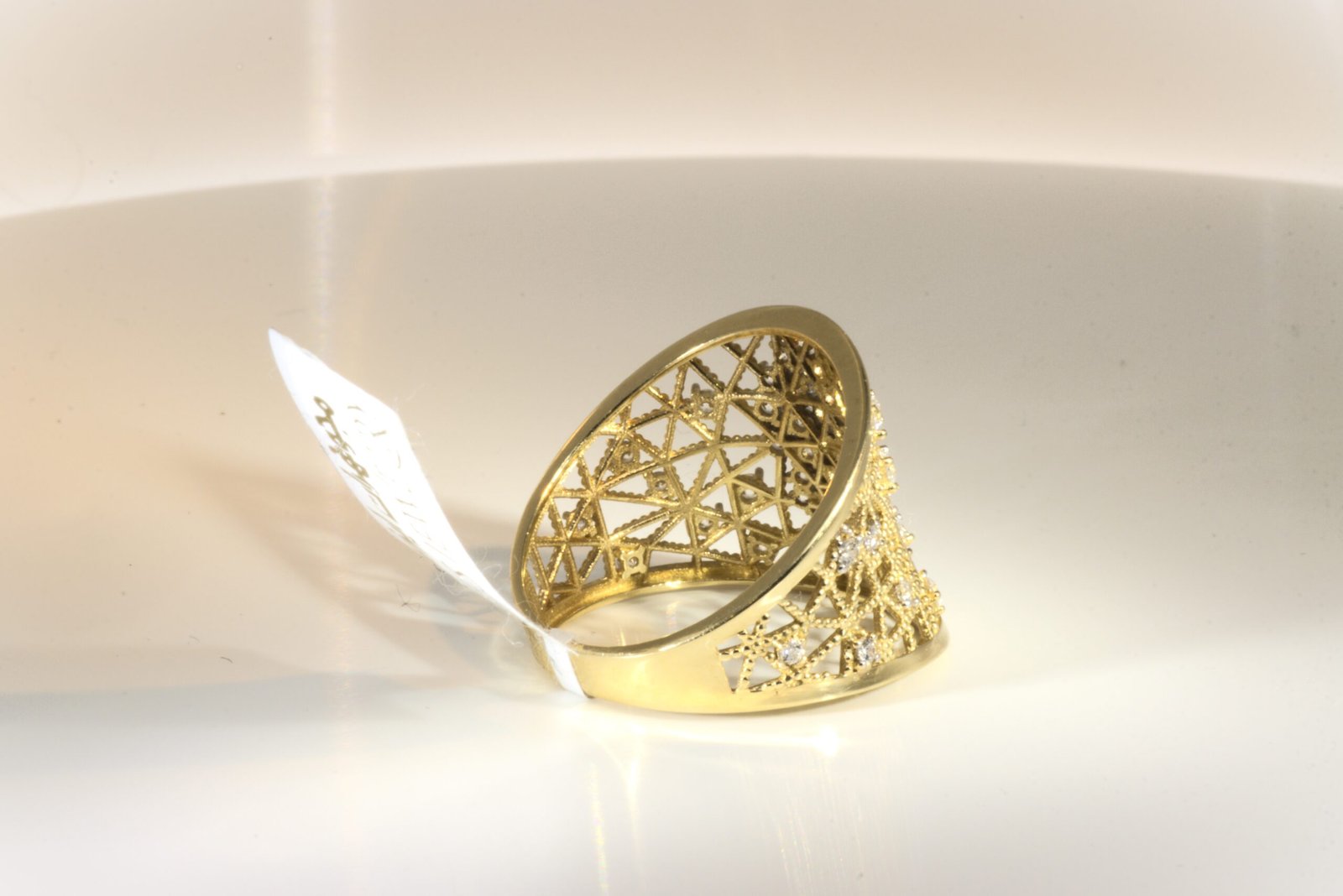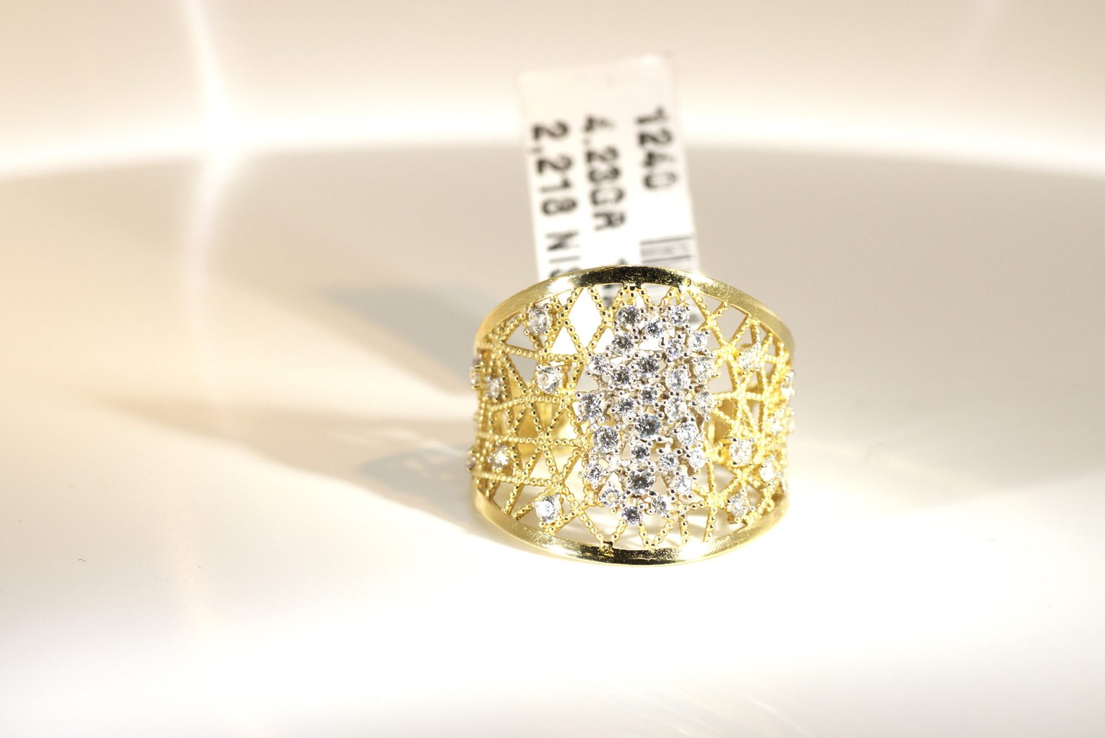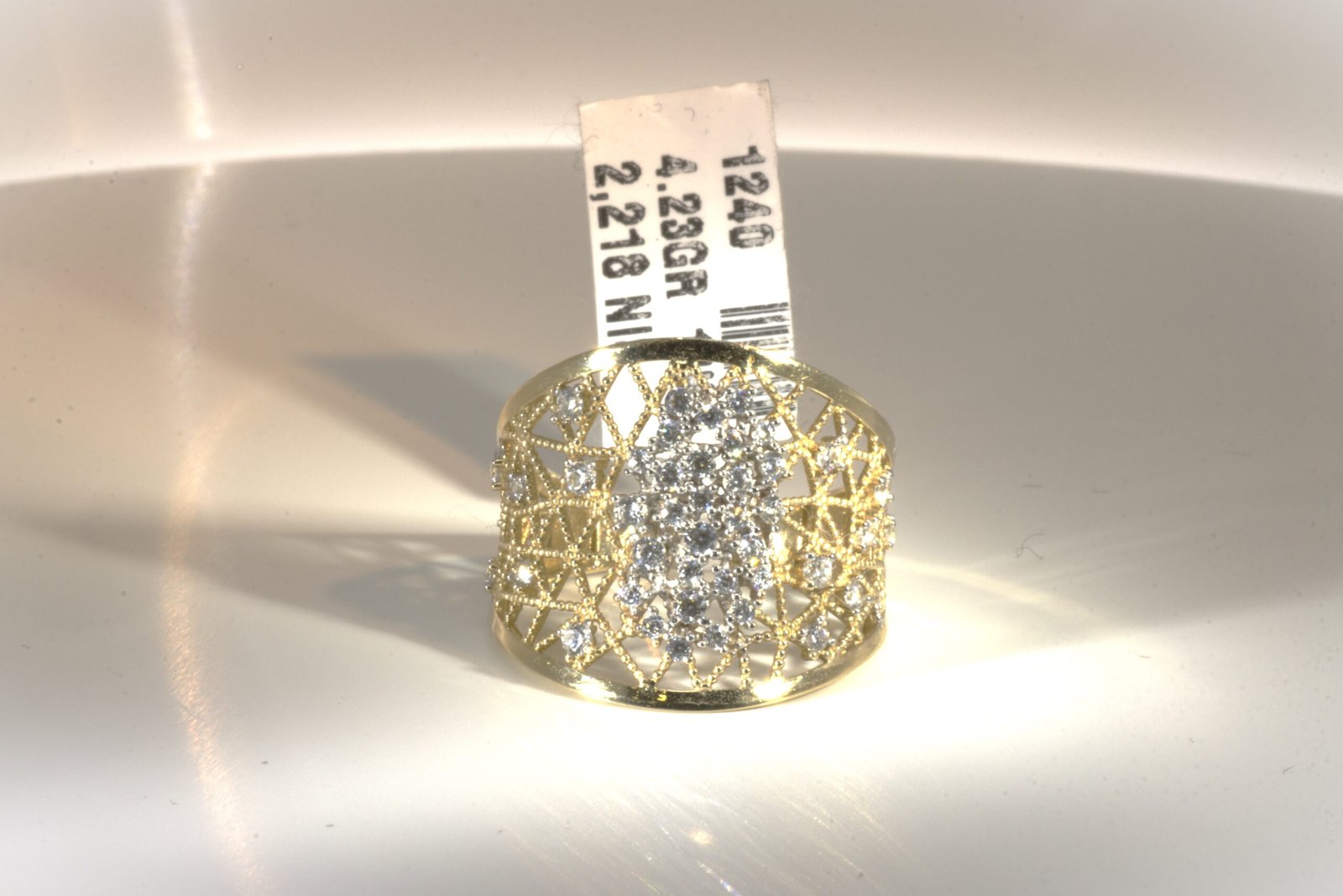 Crafted with precision, this 14k gold ring exudes a timeless sophistication. The high-quality gold ensures durability and a brilliant shine that will last for years. Each stone embedded in the ring has been selected for its clarity and brilliance, creating a dazzling effect that is sure to turn heads. This ring represents not only luxury but also a piece of art that can be cherished.
