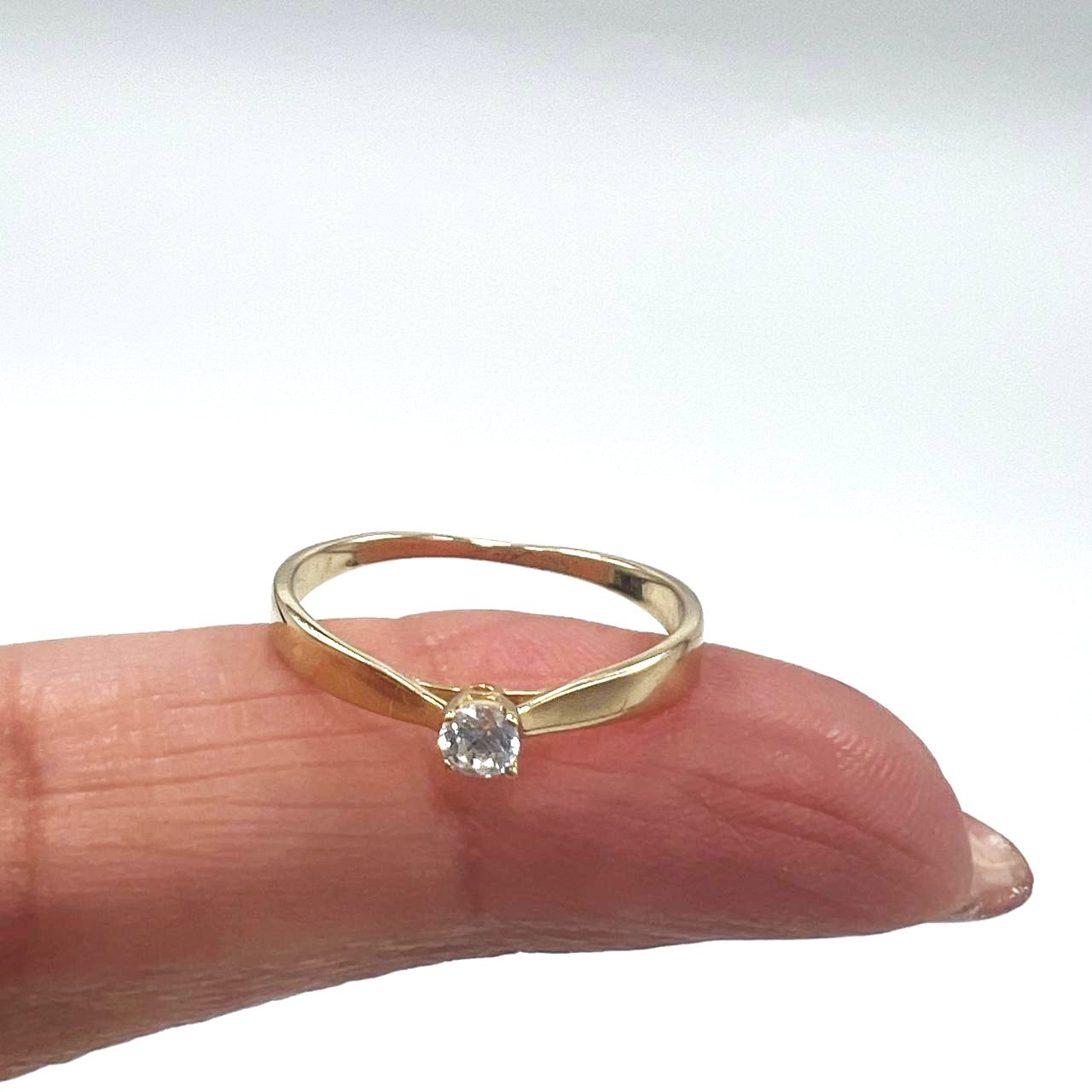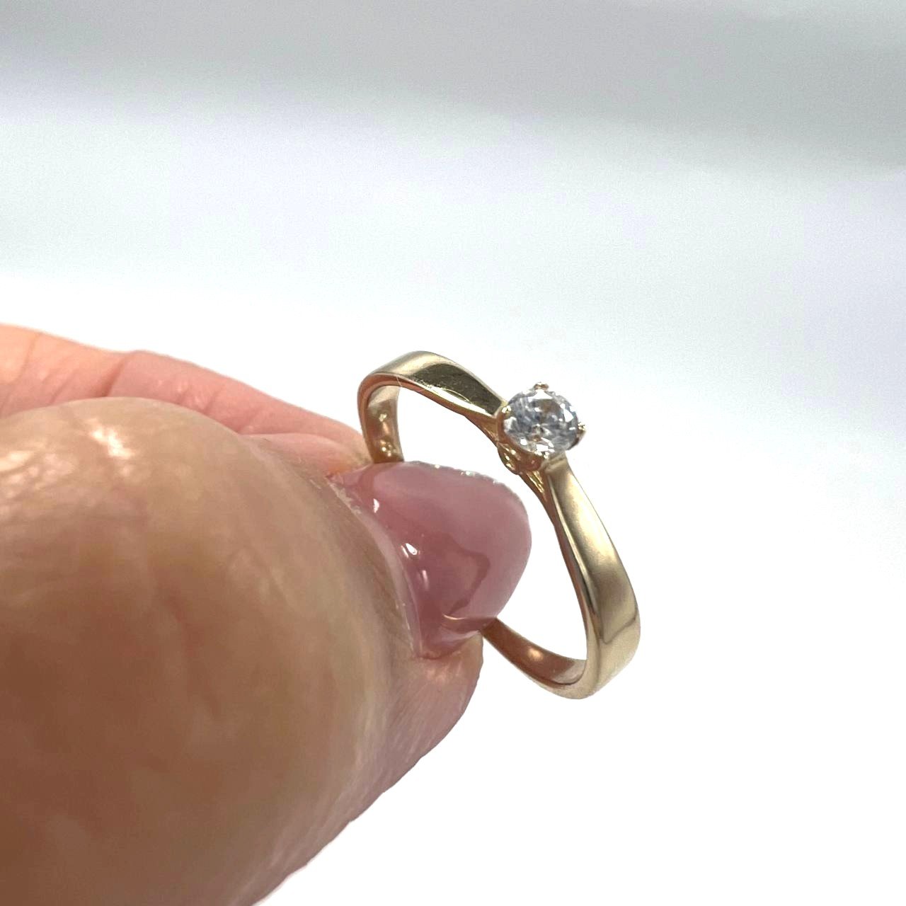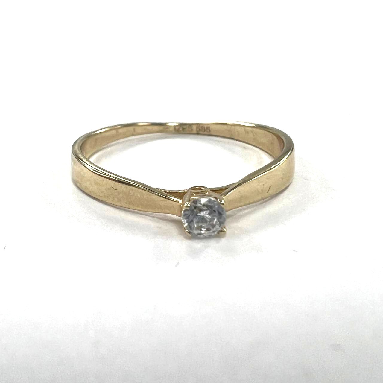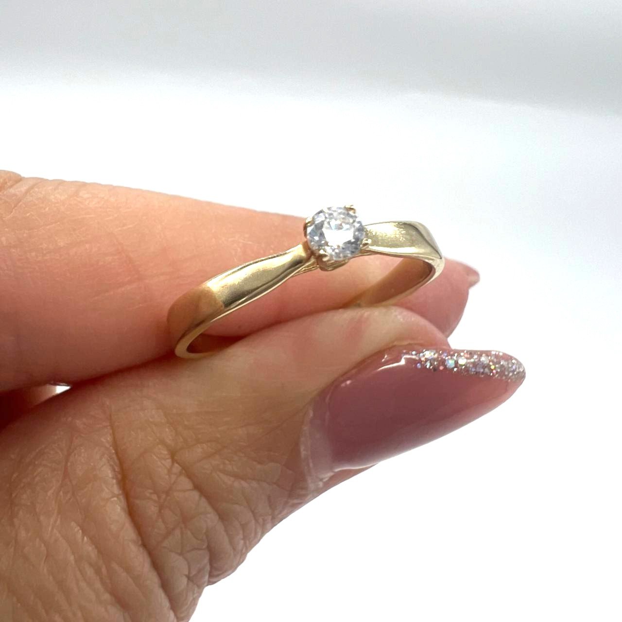 14K Gold Solitaire Ring with Sparkling Zircon Stone, Elegant and Timeless.