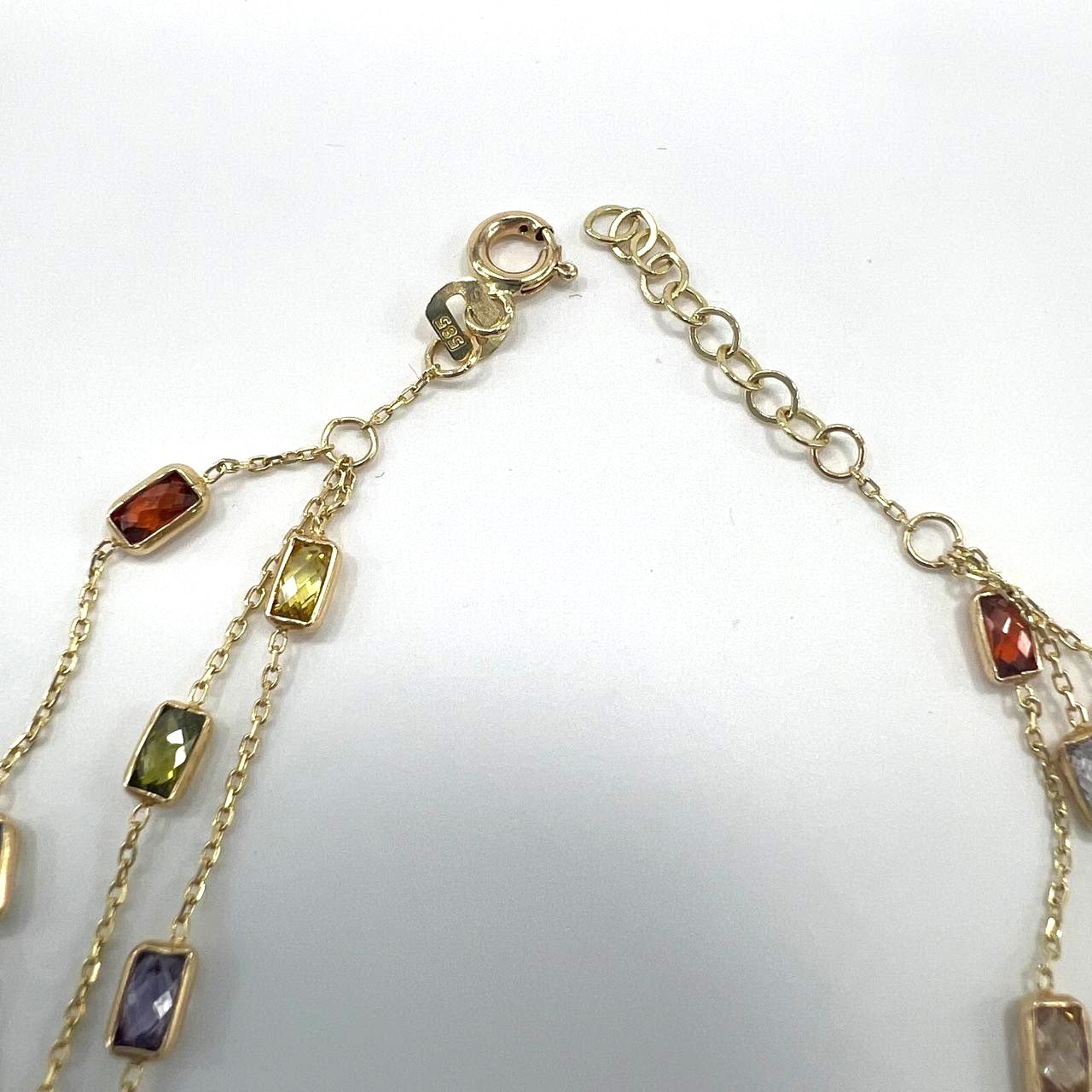 Discover the beauty of our Dazzling Triple Layer Multicolor Zircon Gemstone Necklace, meticulously crafted from 14K Solid Yellow Gold with exceptional craftsmanship and a refined design. This exquisite piece features vibrant rectangular Premium Zircon gemstones, each precisely set to catch the light and radiate brilliance from every angle, making it perfect for special occasions, everyday elegance, or as a thoughtful, meaningful gift. Combining timeless charm with modern elegance, it adds a sophisticated touch to any look, embodying distinctive style and enduring beauty.