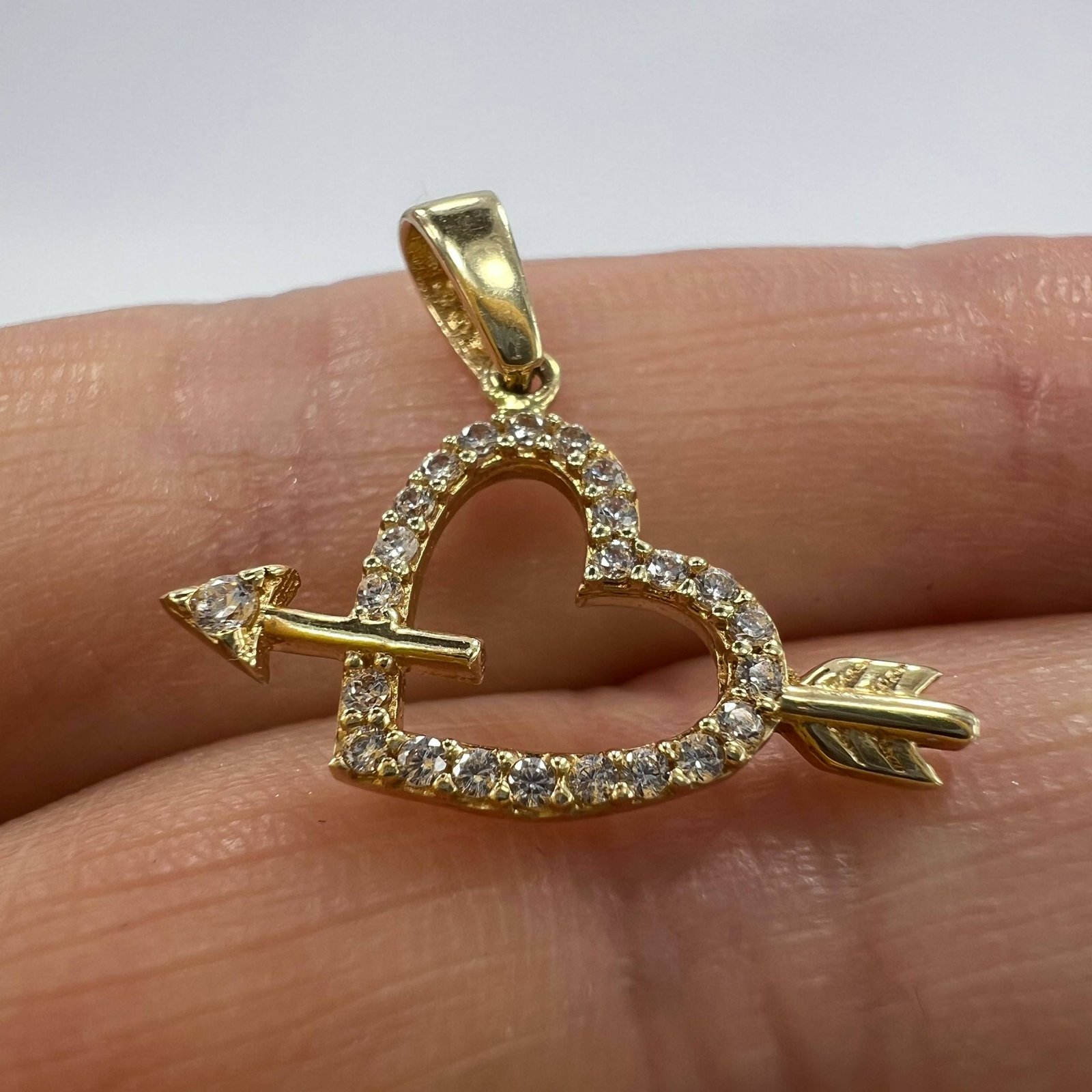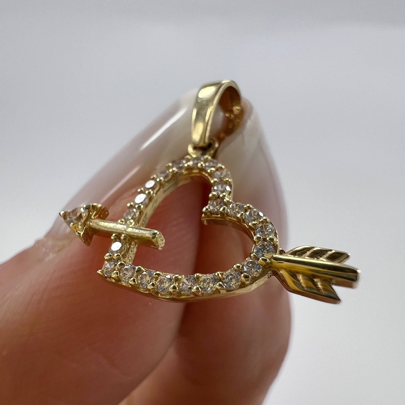 Elegant 14K Italian Gold Heart Pendant with Arrow – 0.9g Sparkling Design