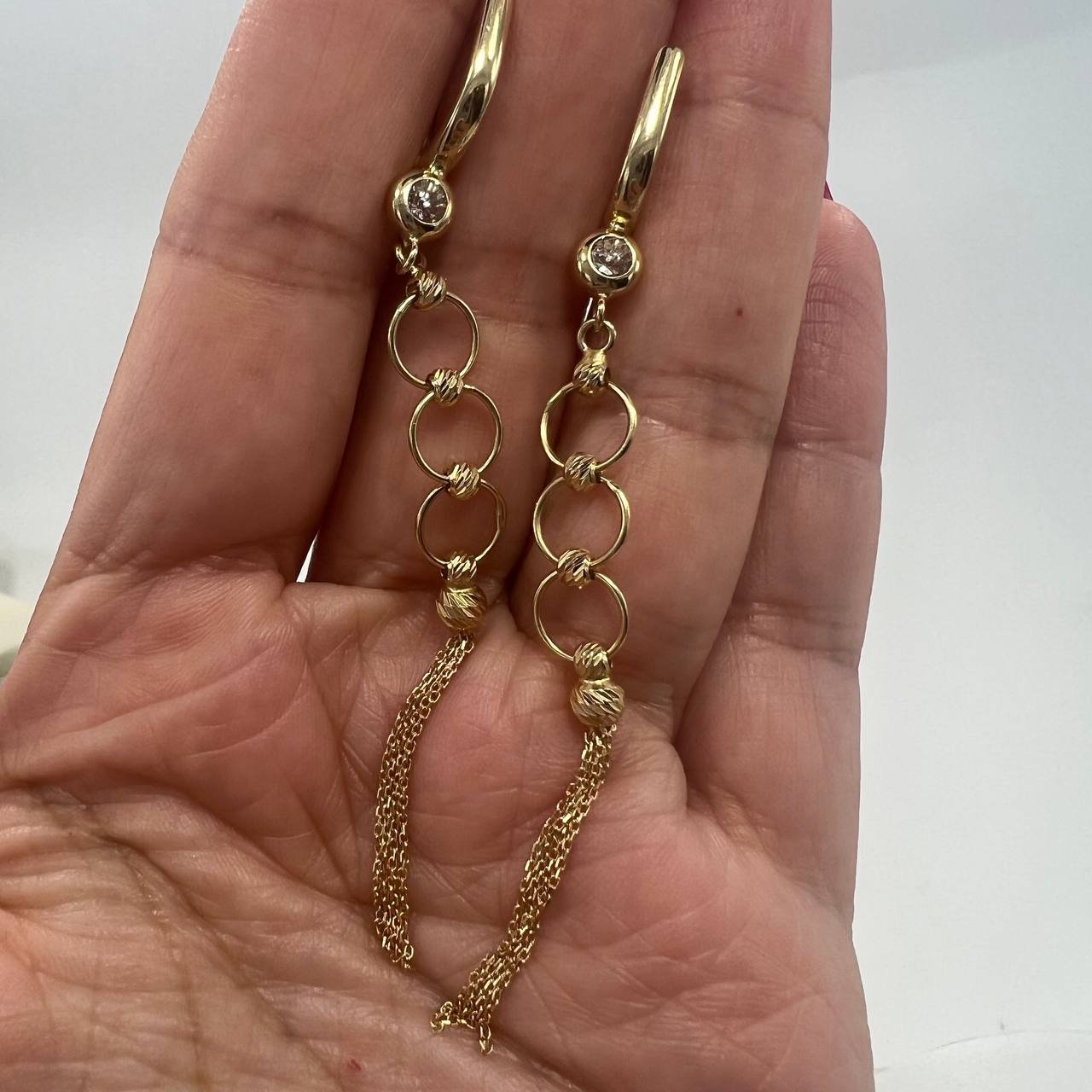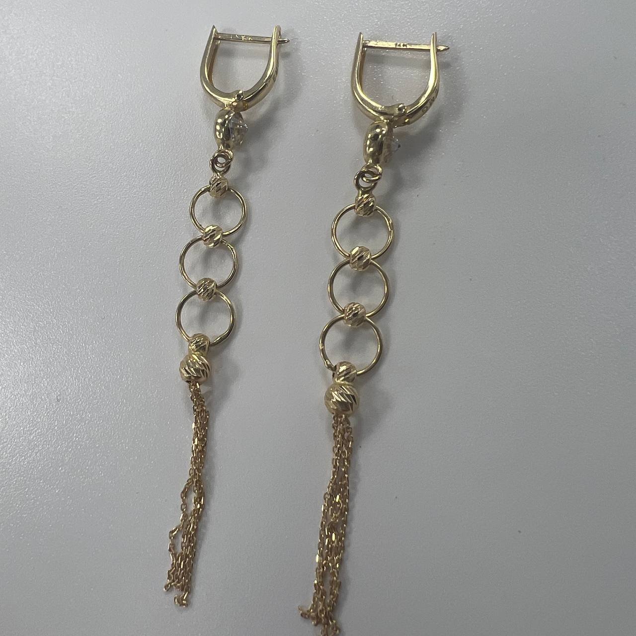 Elevate your style with these 14K Solid Gold Dangle Earrings from Italy, crafted with timeless elegance and modern charm. The delicate combination of polished gold rings and fine tassel chains creates graceful movement and a luxurious look.