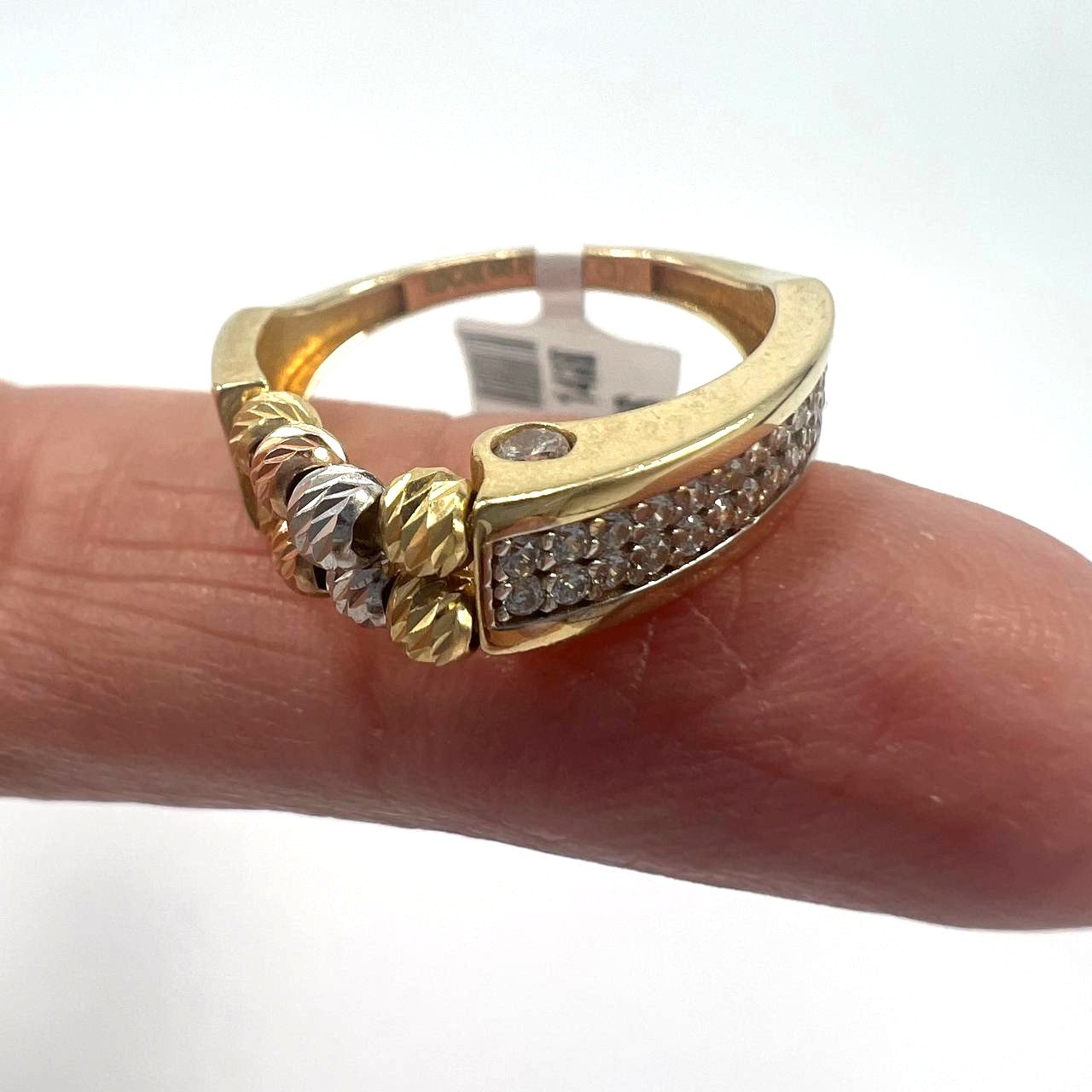 14K Solid Gold Tri-Tone Beaded Zircon Pavé Ring size 7