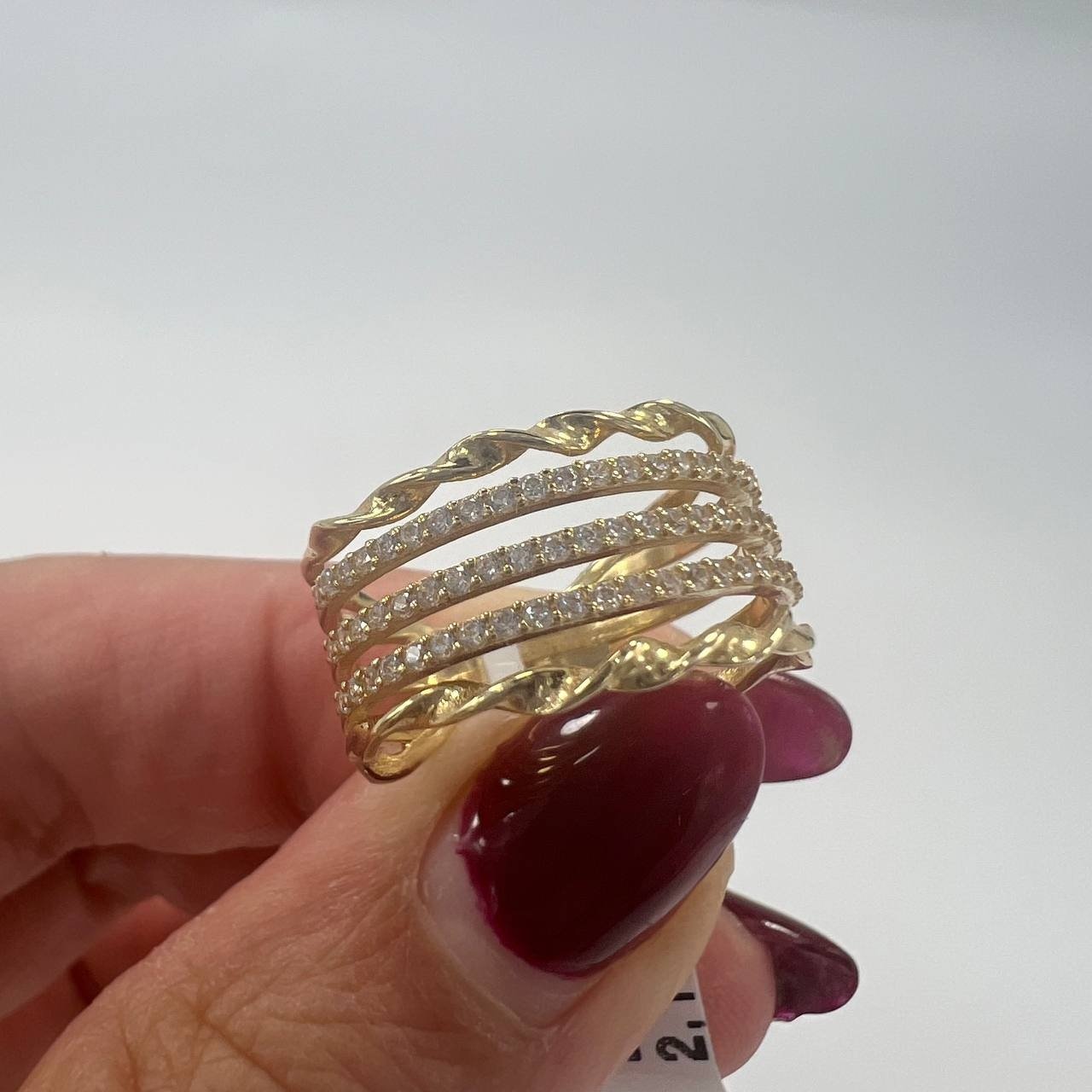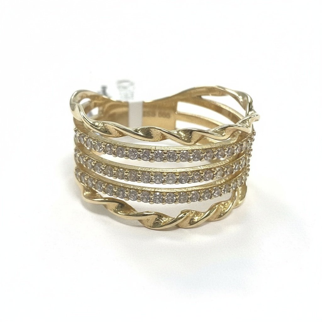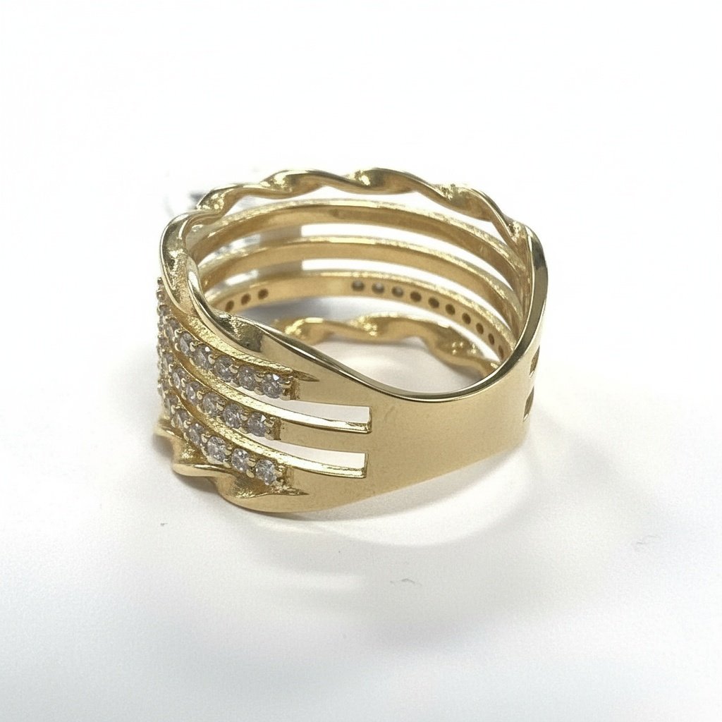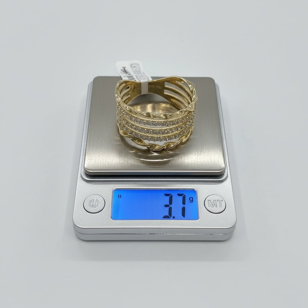 14K Solid Yellow Gold Ring size 7.5 — Multi-Layer Twisted CZ Open Band Design | New