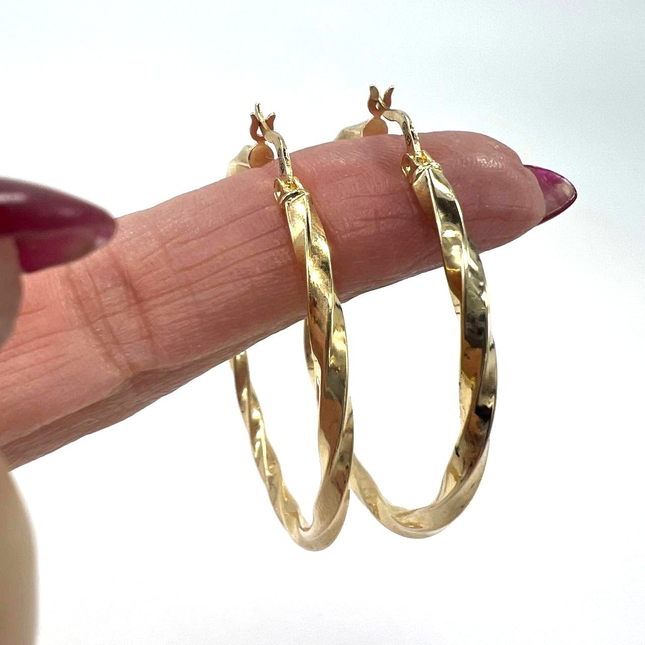 14K Solid Yellow Gold Twisted Hammered Hoop Earrings — Dainty Lightweight Fine Jewelry