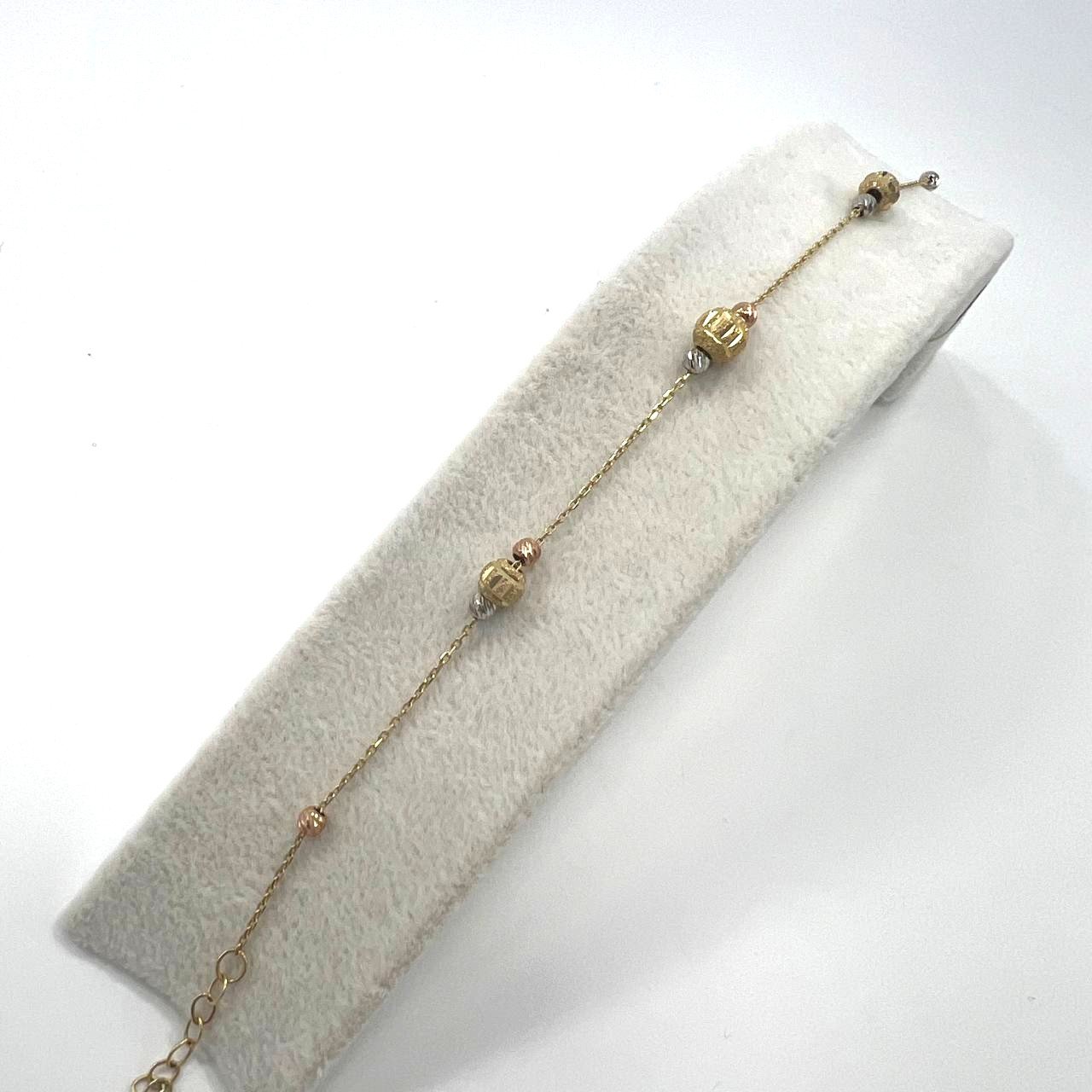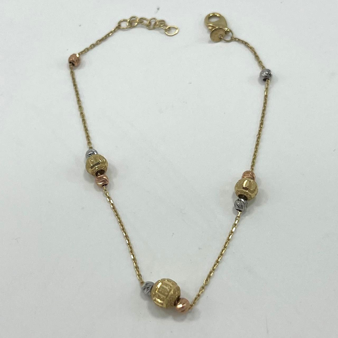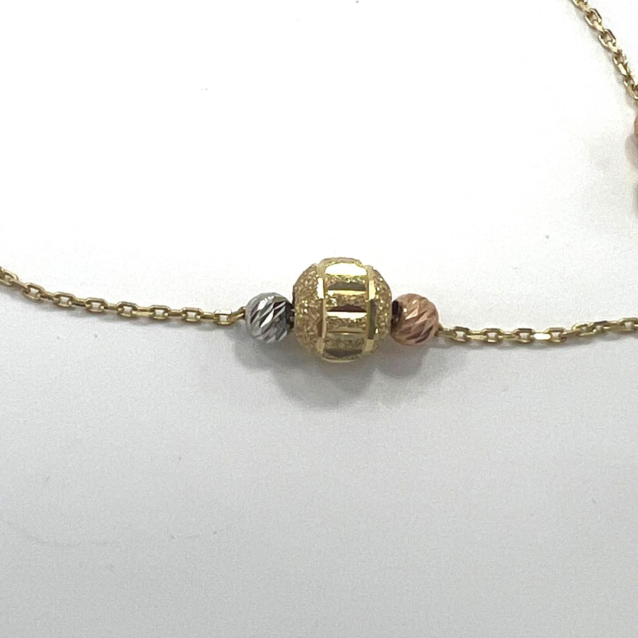 Crafted in 14K gold, this ball bracelet features colorful gold beads in white, rose, and yellow, creating a playful yet elegant design. Its vibrant mix of tones makes it perfect for daily wear or special occasions, adding a touch of charm and sophistication to any look.