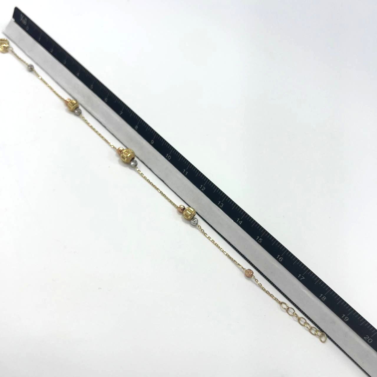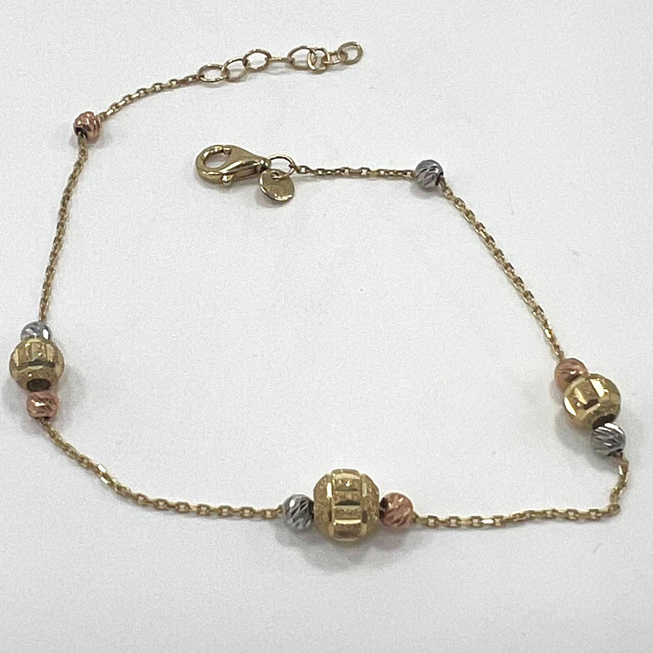 14K tri-color gold bead ball bracelet in white, rose & yellow tones, elegant and chic