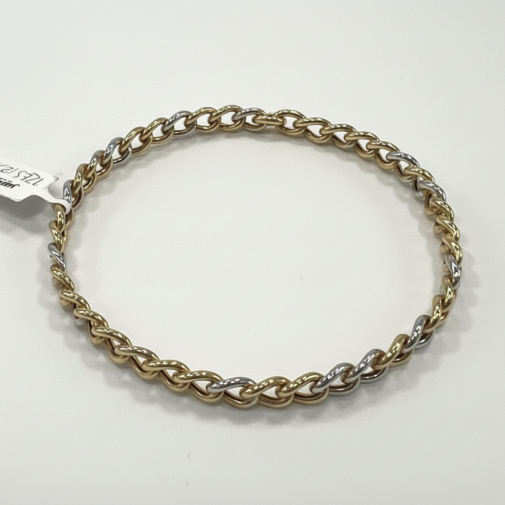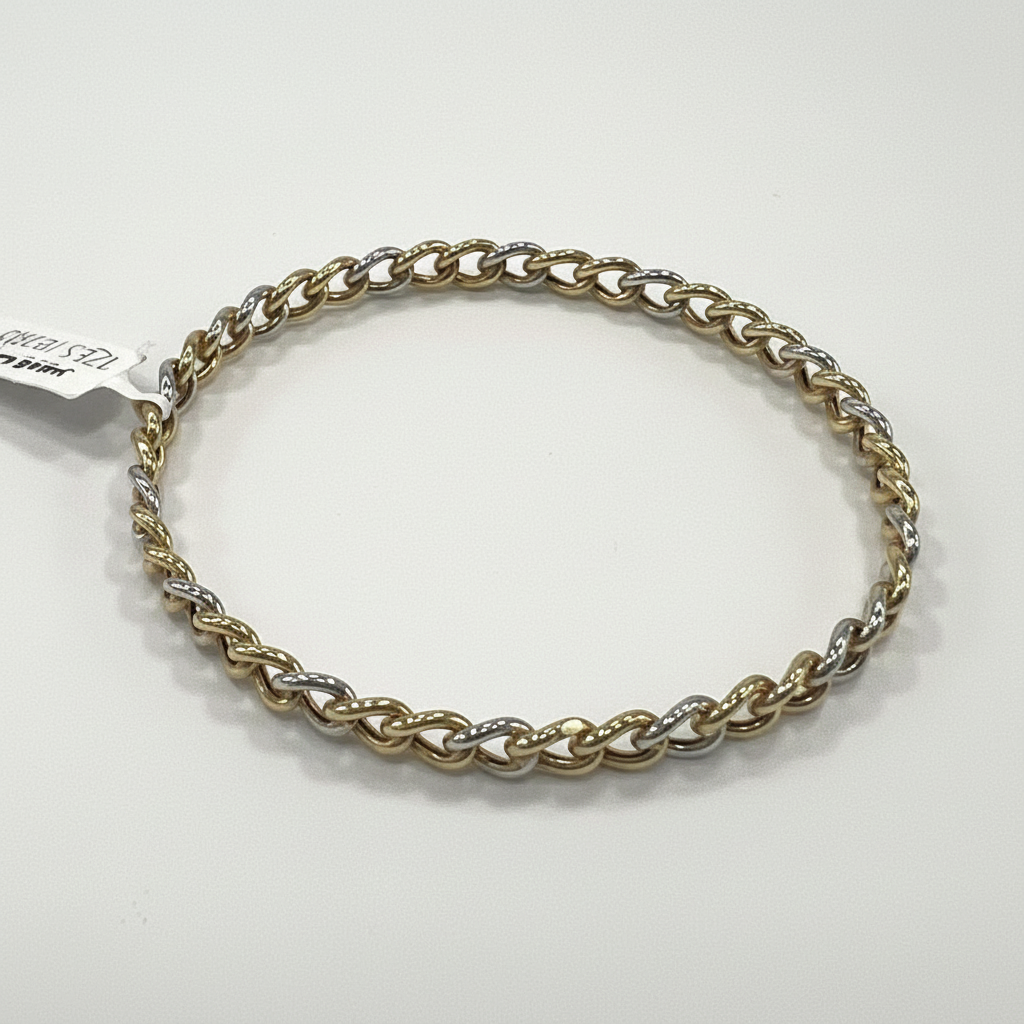 Bracelet in 14K Two-Tone Gold — Solid Rounded Link Design | New Condition