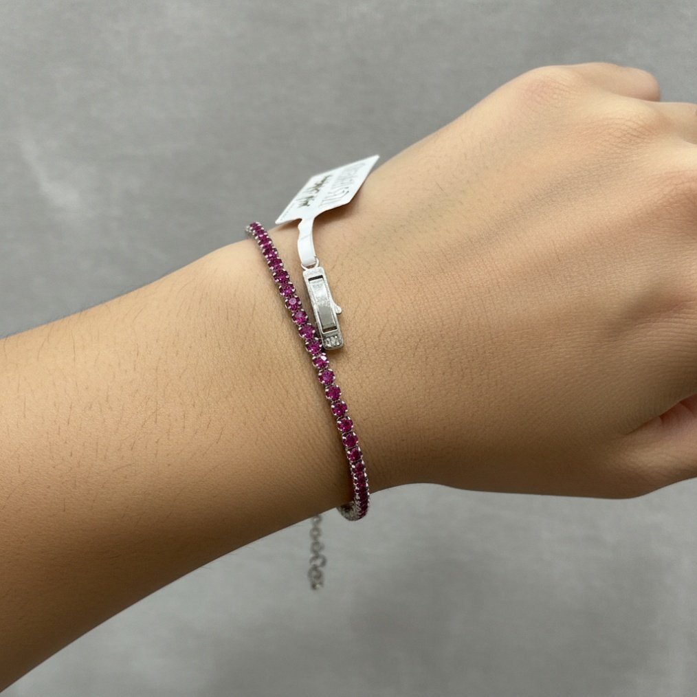 - ? Features a **Classic Tennis Bracelet Design** with a continuous line of perfectly set gems.