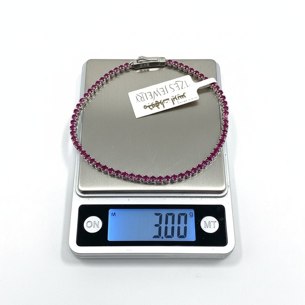 Tennis Bracelet in 14K White Gold — Sparkling Pink Zircon Design | New Condition