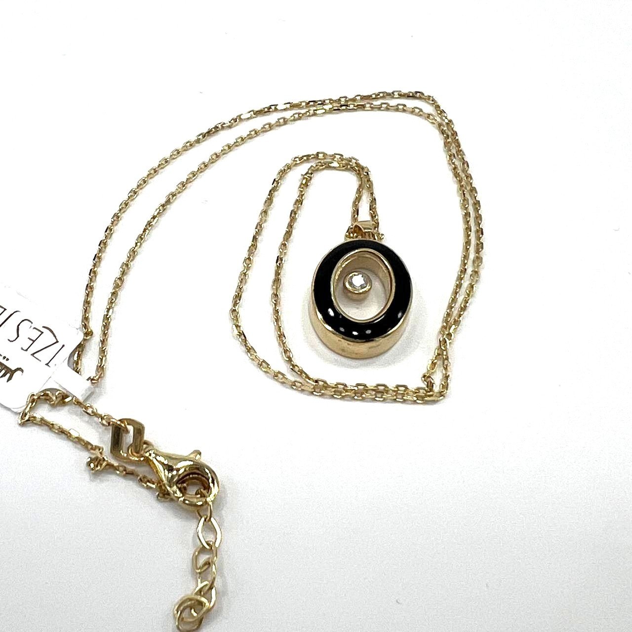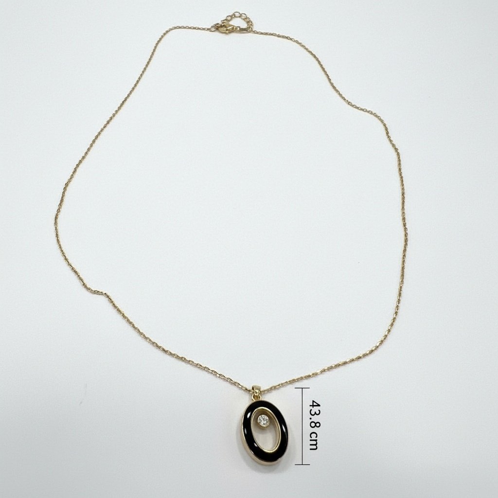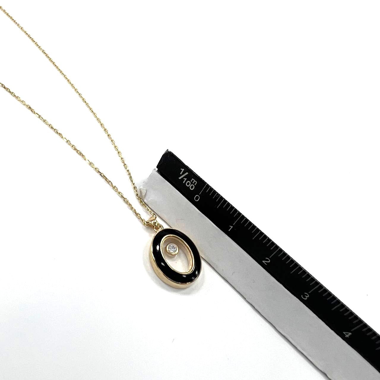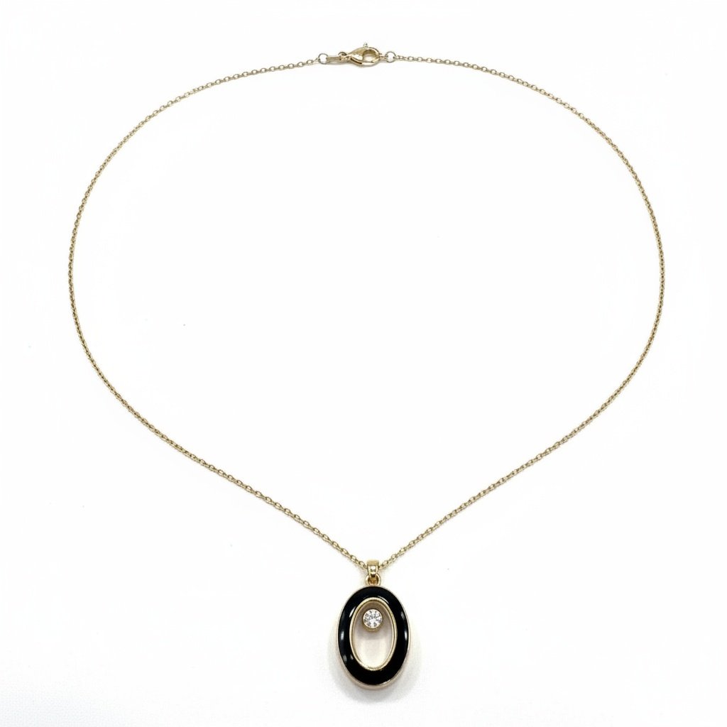 14K Yellow Gold Necklace — Black Enamel Oval Pendant | New
