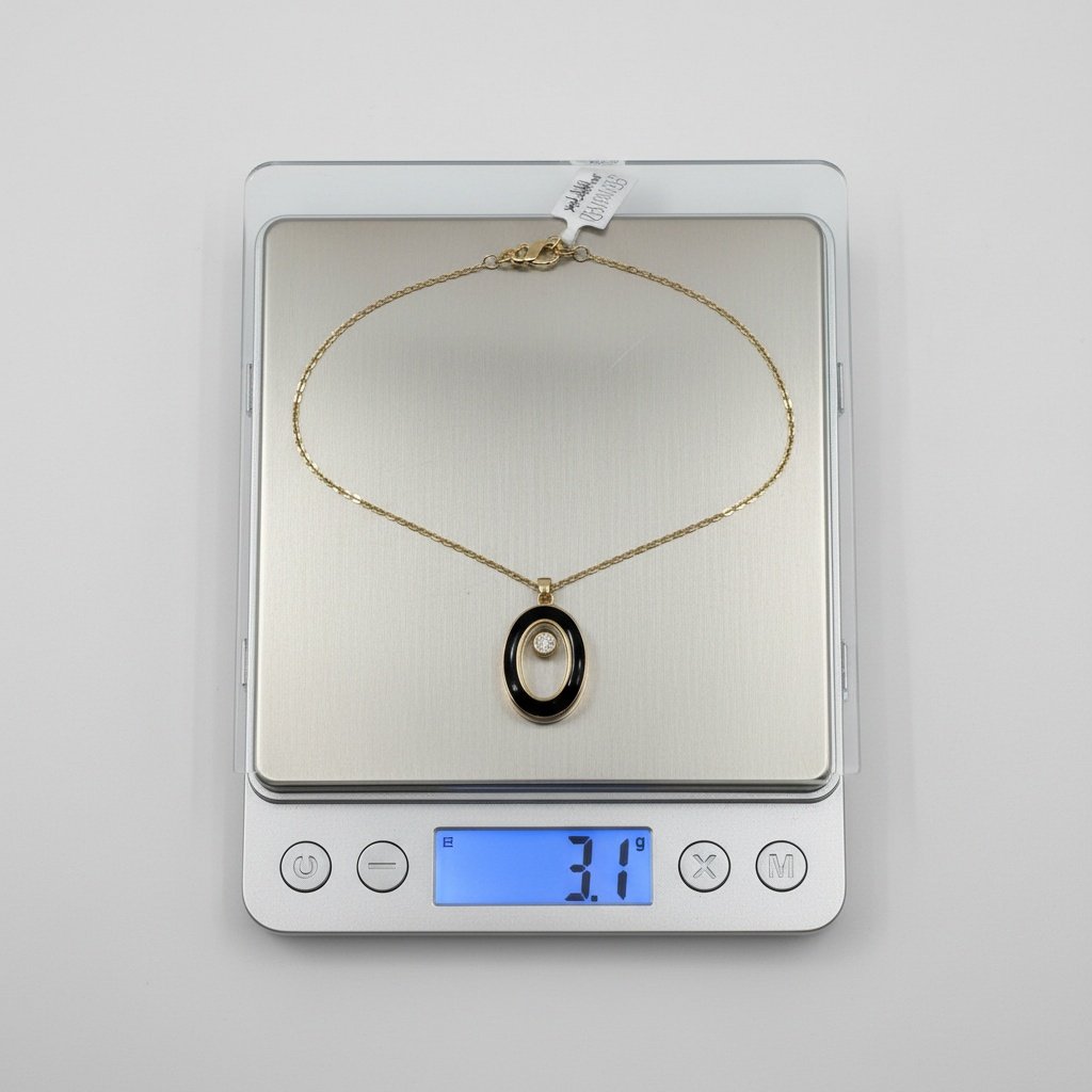 14K Yellow Gold Black Enamel Oval Pendant Sparkling Stone Dainty Gift