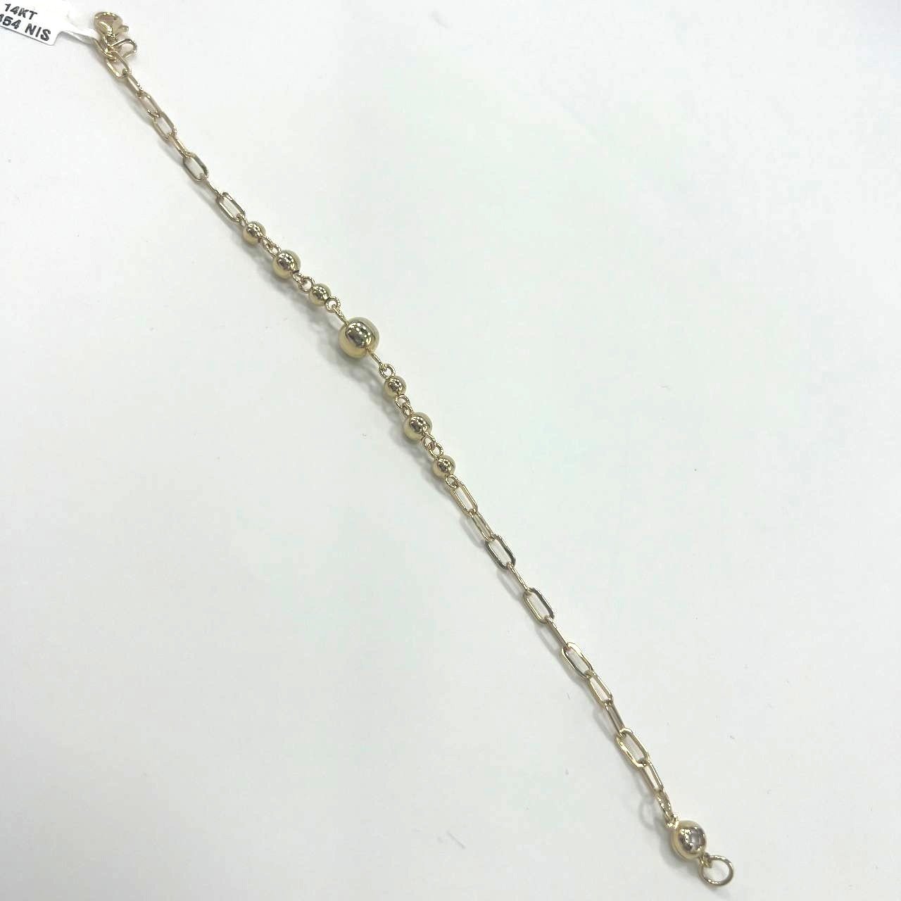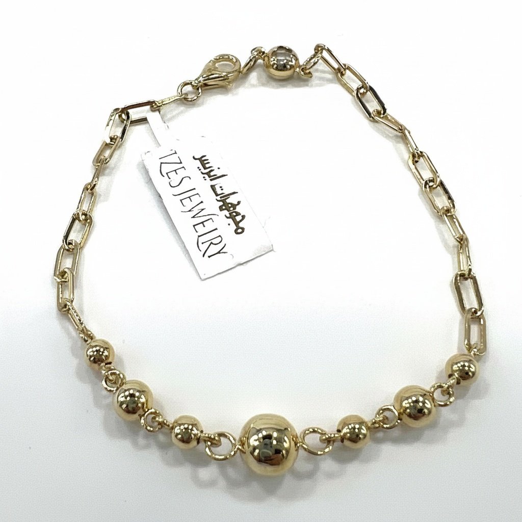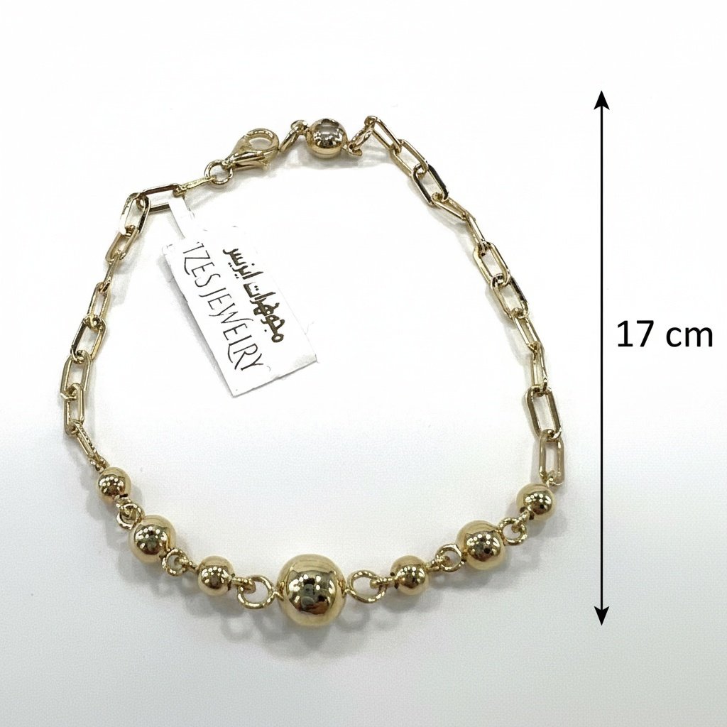 14K Yellow Gold Bracelet — Golden Beads Dainty Chain Link | New