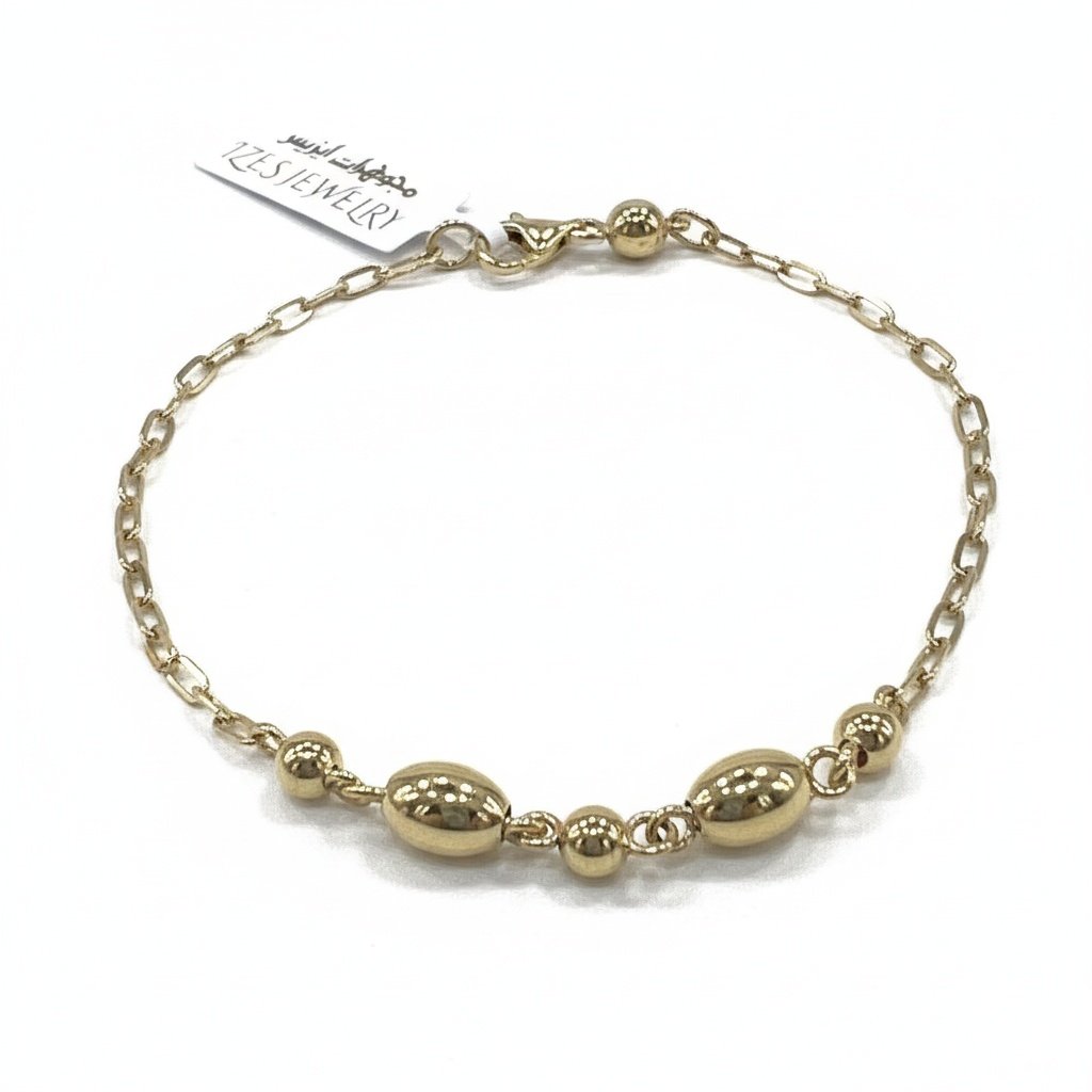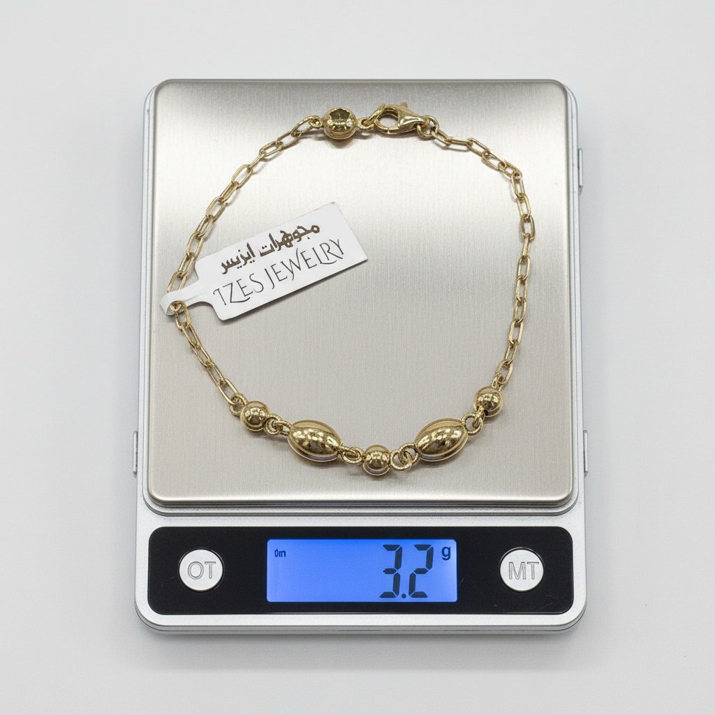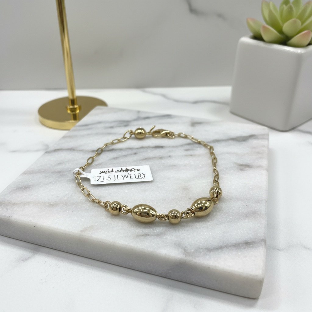 Combining timeless charm with modern elegance, it adds a sophisticated touch to any look. Crafted from genuine 14K gold, this bracelet is lightweight and comfortable, making it ideal for daily wear or layering with other gold pieces. The elegant oval beads bring a unique touch of sophistication, while the modern link chain keeps the design fresh and versatile. Secured with a durable lobster clasp, it offers both style and confidence throughout the day. Perfect for gifting or treating yourself to a subtle statement of refined taste. Sleek. Modern. Effortlessly elegant — the perfect golden accent from IZES Jewelry.