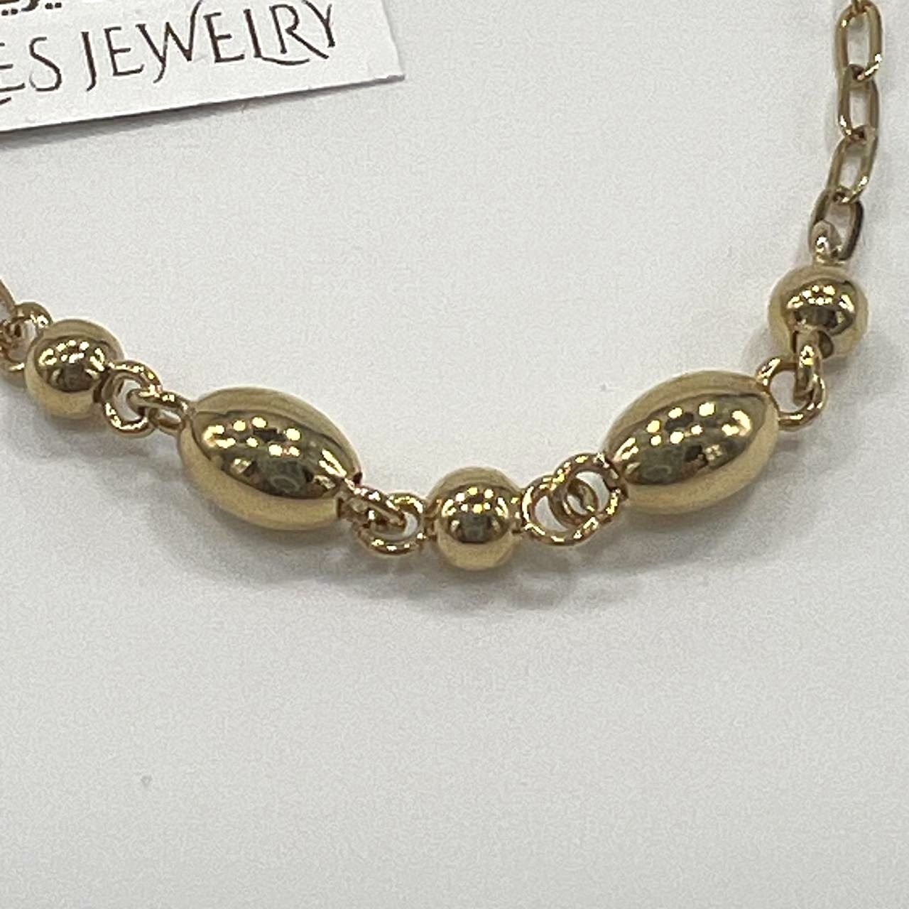 14K Yellow Gold Bracelet — Smooth Oval & Round Beads | New with Tag