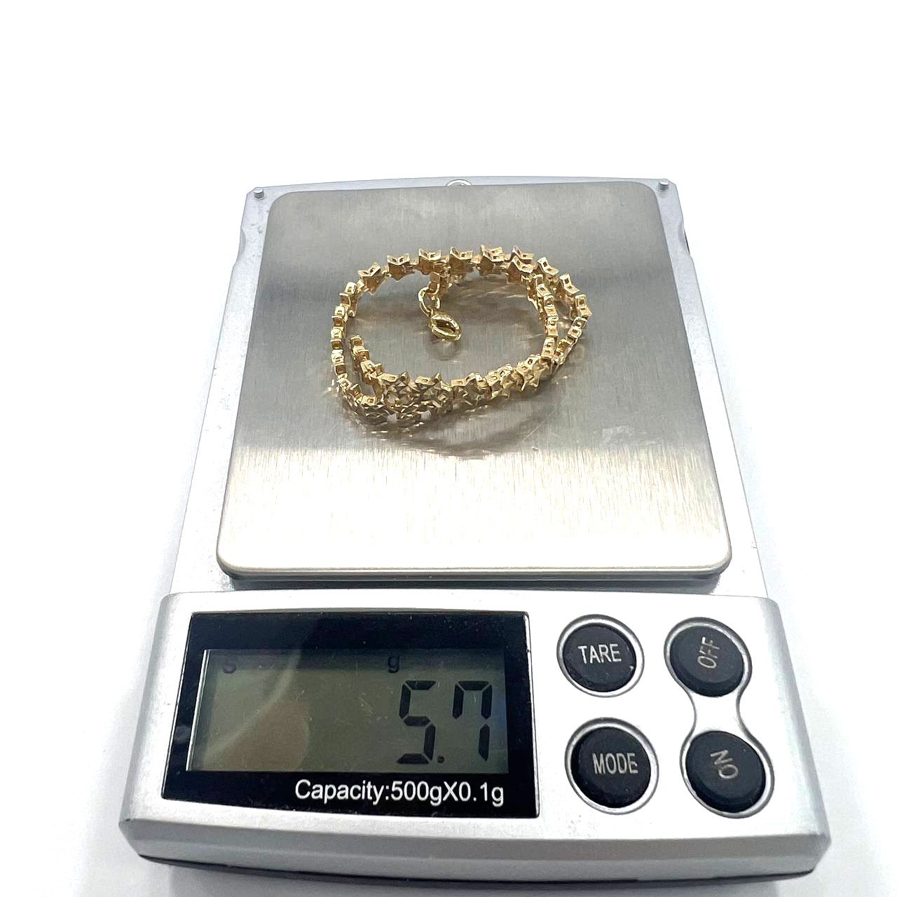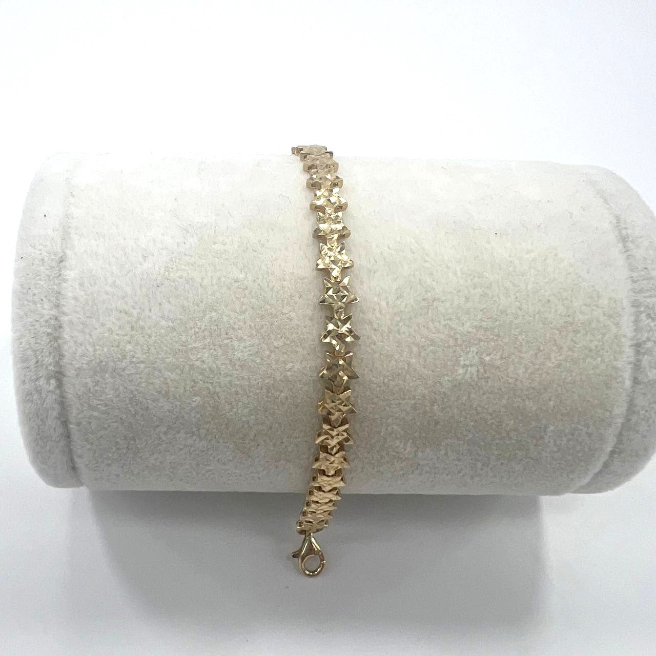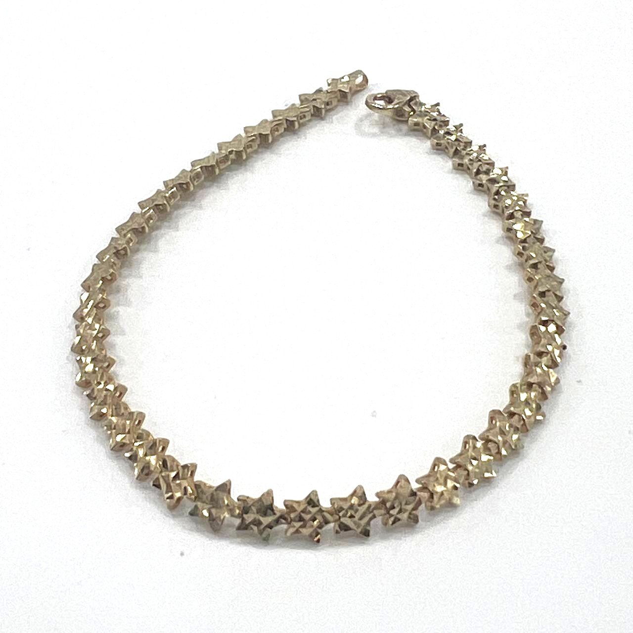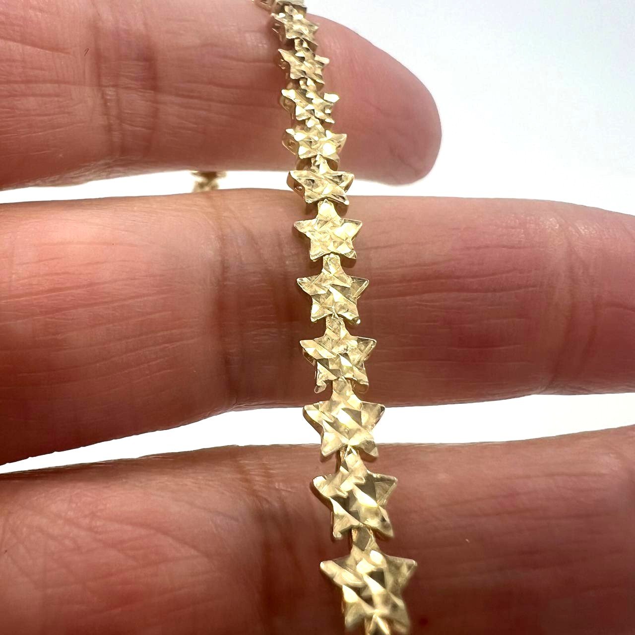 This charming 14K yellow gold bracelet features a delicate star-shaped design that shines with subtle elegance. Its soft, refined lines make it perfect for everyday wear, adding a touch of golden sparkle to your wrist. Lightweight yet luxurious, this bracelet embodies femininity and grace — an ideal piece for those who love understated beauty and timeless style. Perfect as a thoughtful gift or a personal treat that complements any outfit with a celestial glow