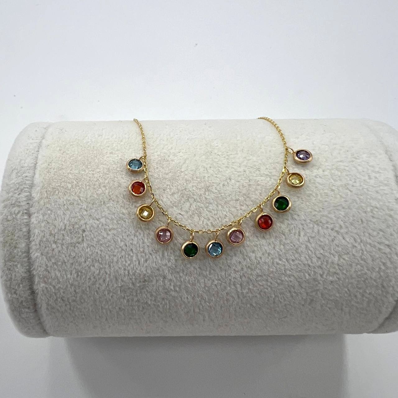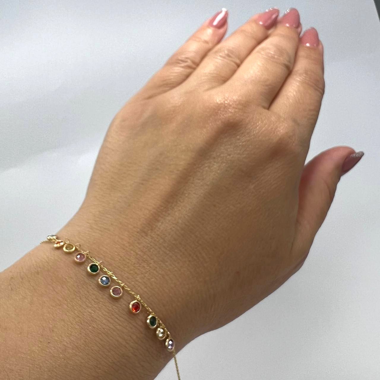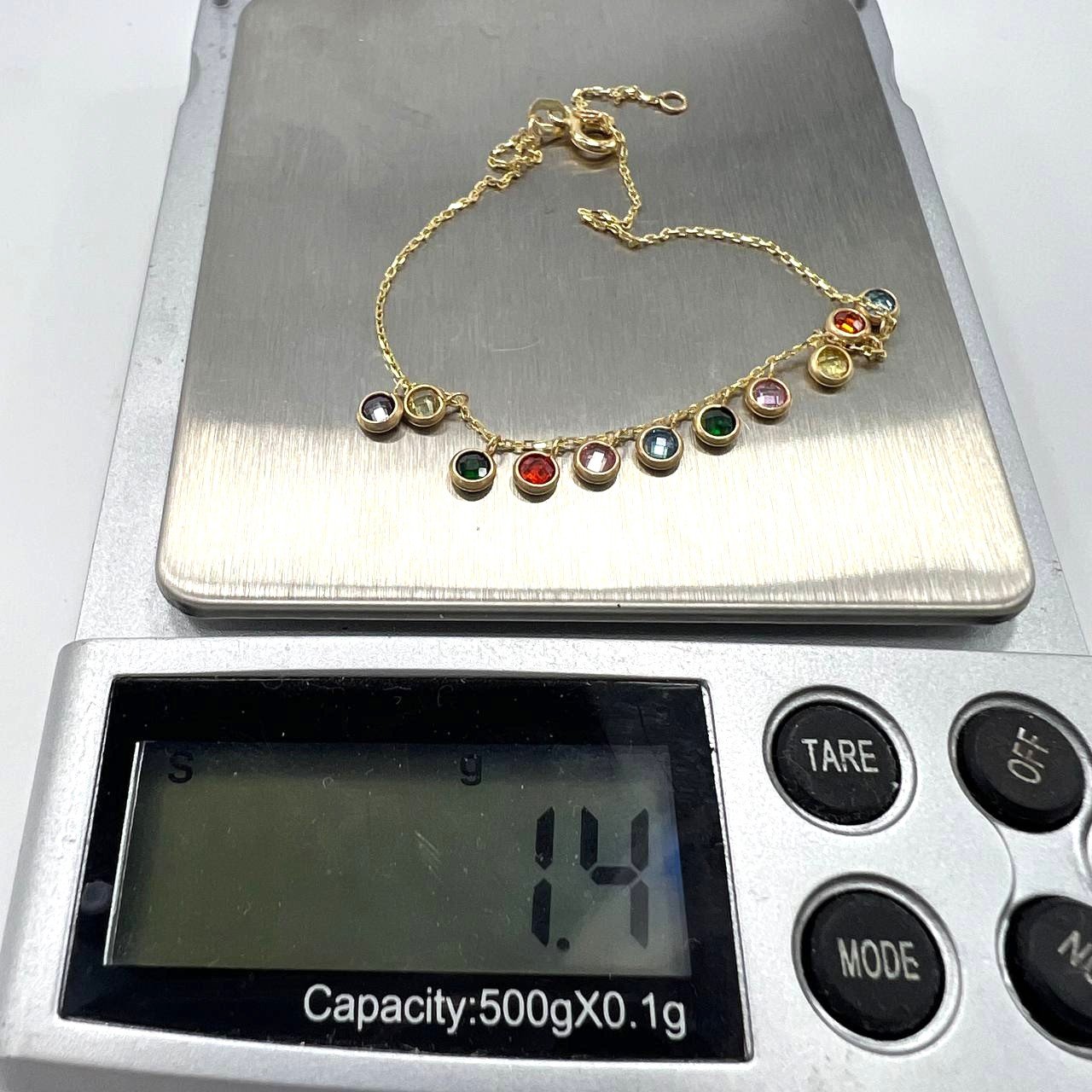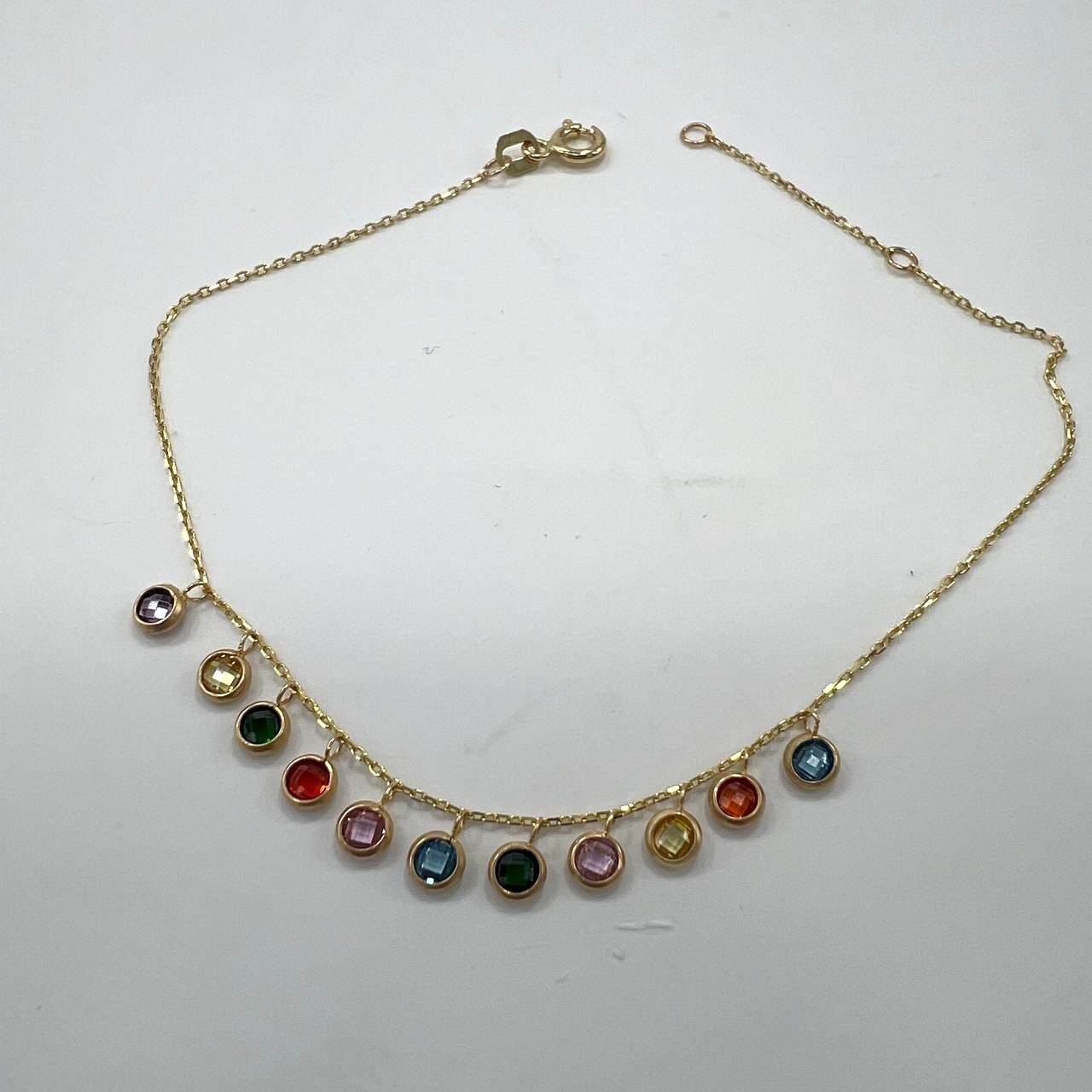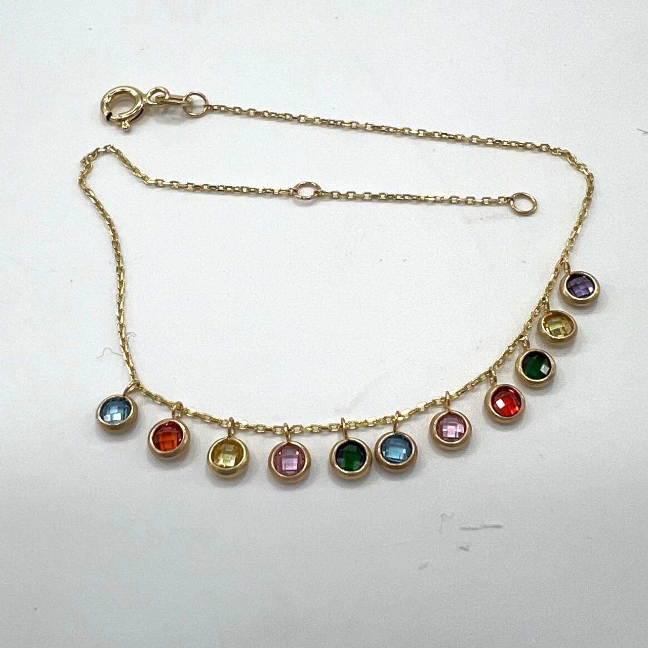 This 14K yellow gold bracelet features colorful round stones that add a playful yet elegant touch. Light and stylish, it’s perfect for daily wear, bringing vibrant charm and timeless beauty to every look, beautiful gift
