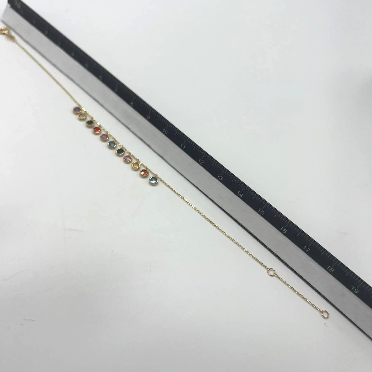 14K yellow gold bracelet adorned with vibrant multicolored stones, elegant charm