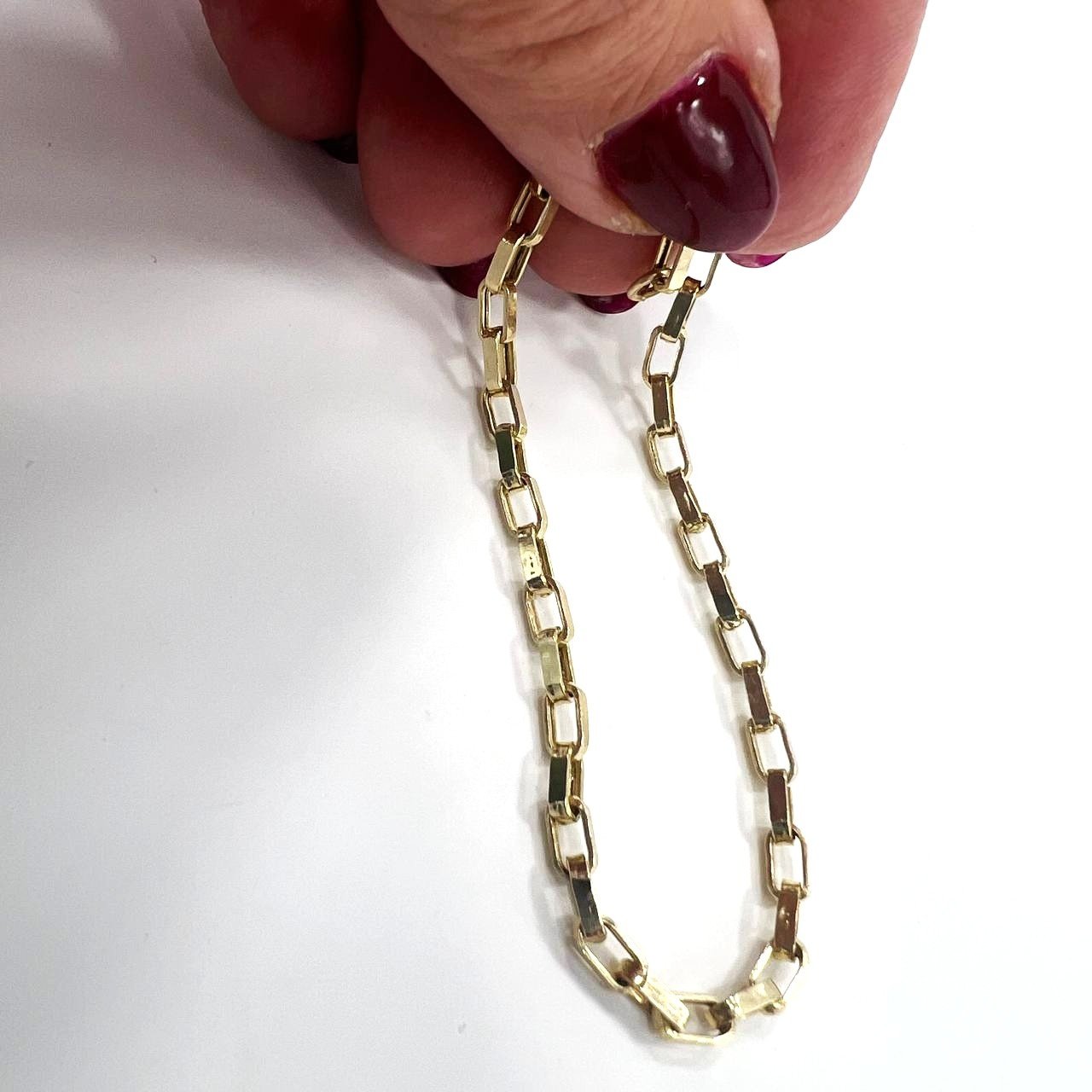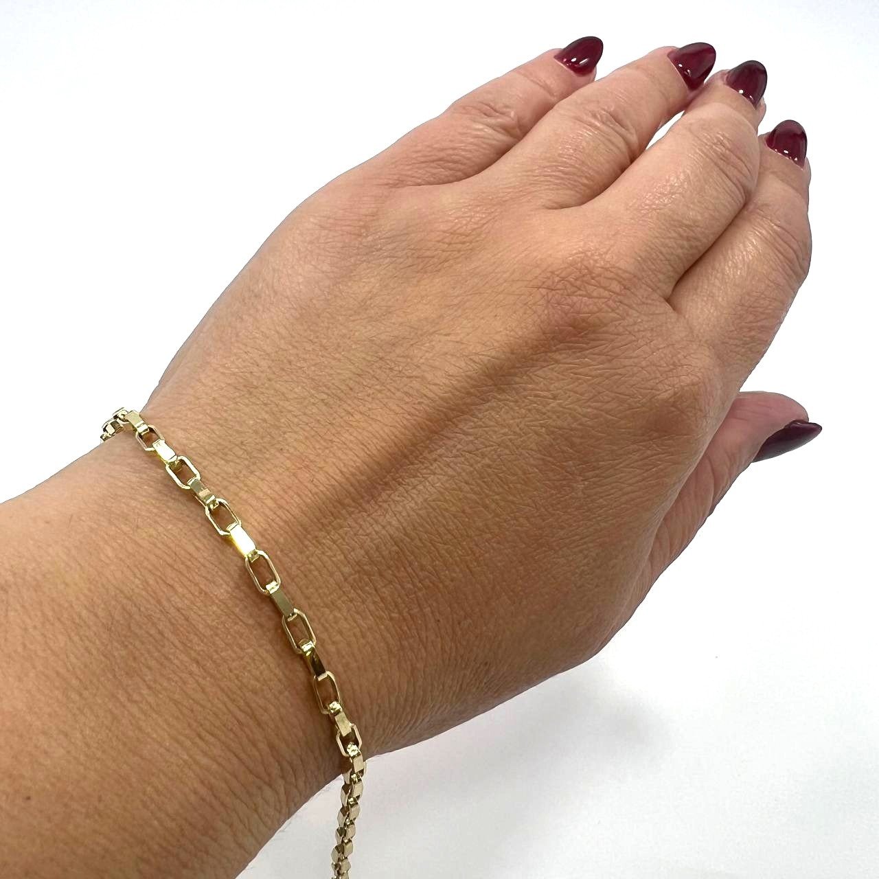 This beautiful 14K yellow gold chain bracelet combines elegance with everyday comfort. Crafted with a smooth, chain-like design, it offers a refined yet casual look that suits any style — from classic to modern. Its lightweight feel makes it perfect for daily wear, while the warm golden shine adds a touch of sophistication to every outfit. Whether worn alone or layered with other bracelets, it’s a timeless piece that enhances your look with subtle luxury and effortless charm.