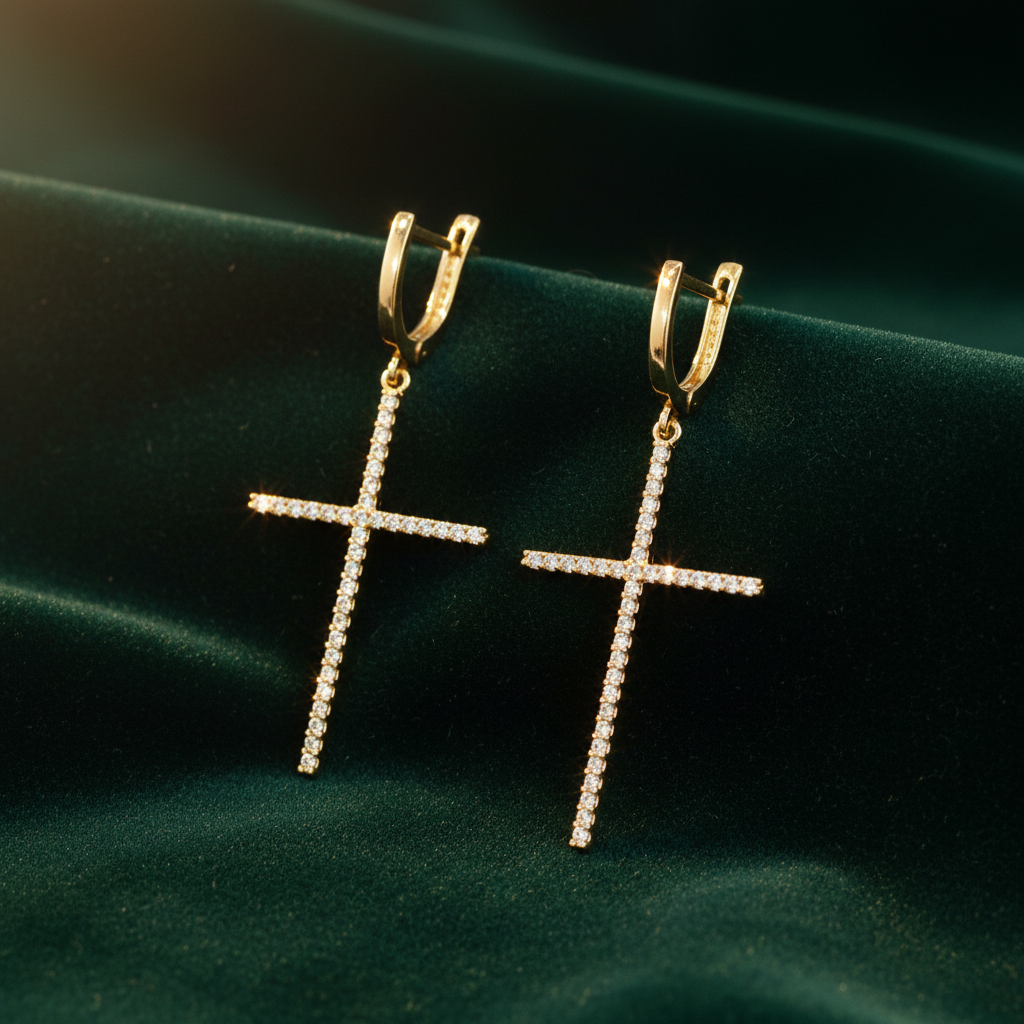 This elegant pair features sparkling clear zircon stones meticulously set in a classic cross design, making them perfect for everyday elegance, meaningful special occasions, or as a thoughtful gift.