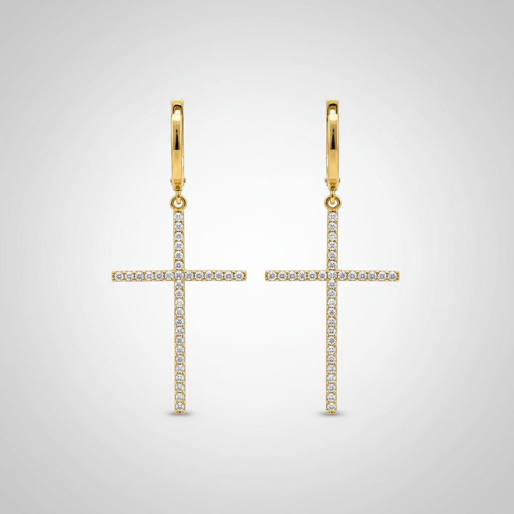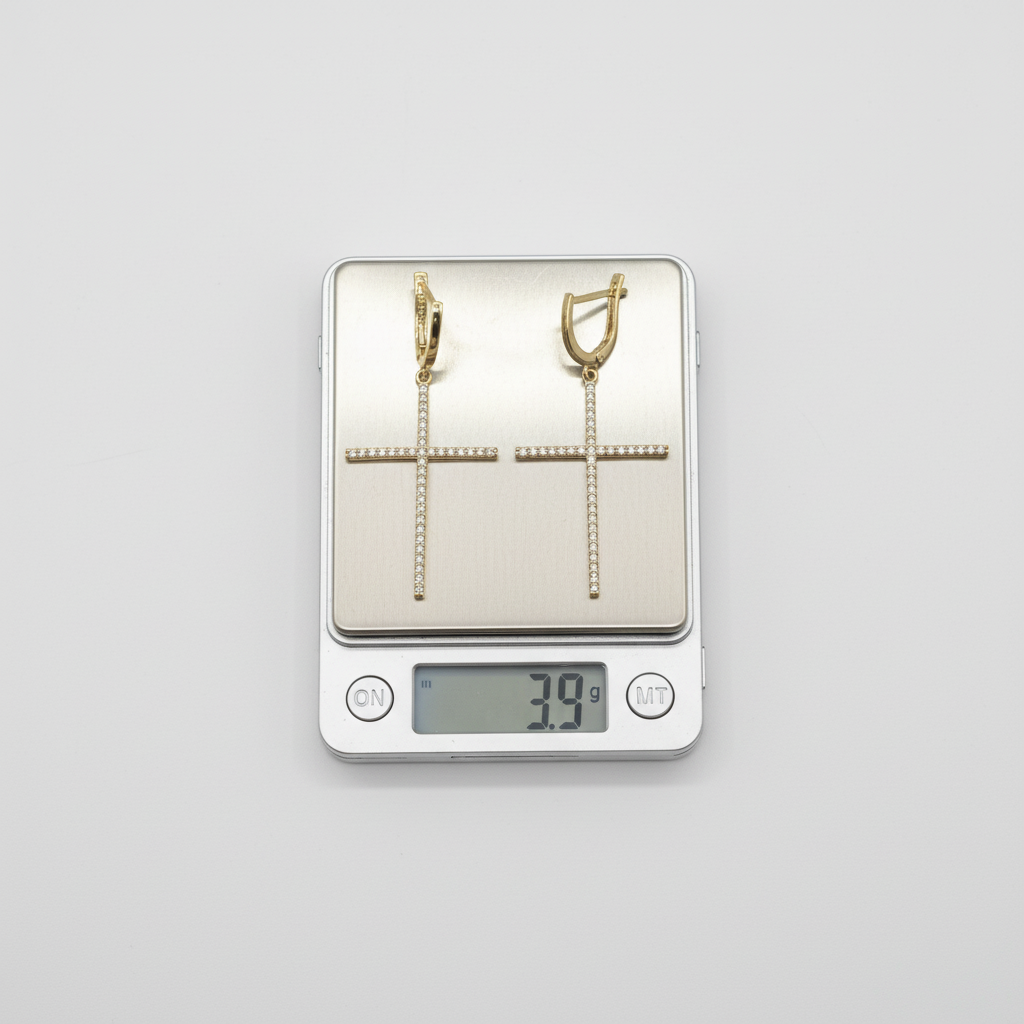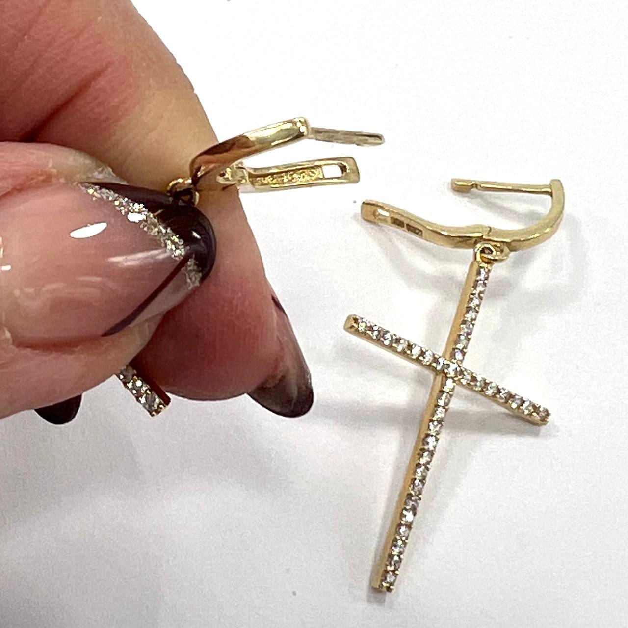 14K Yellow Gold Drop Earrings in 14K Gold — Elegant Zircon Cross Design | New