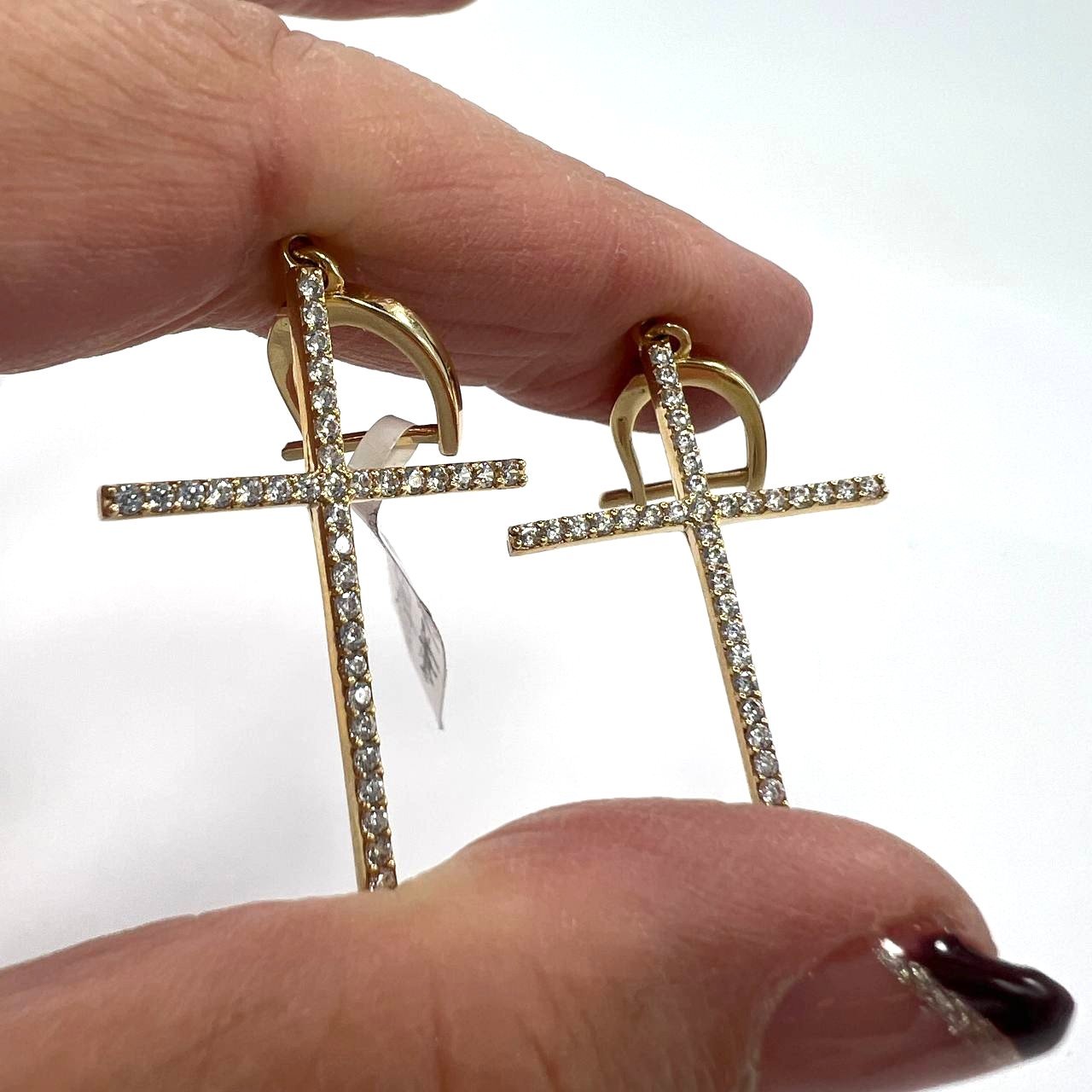 Discover the beauty of these 14K Yellow Gold Cross Drop Earrings, crafted from 14K gold with exceptional craftsmanship and refined design.