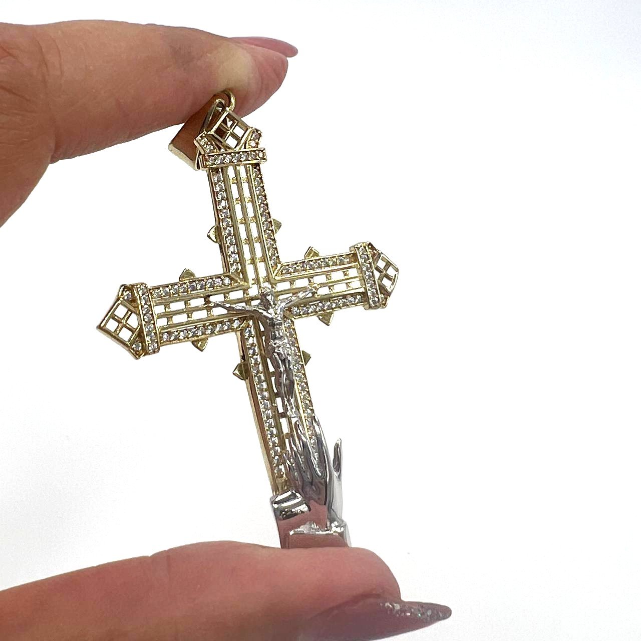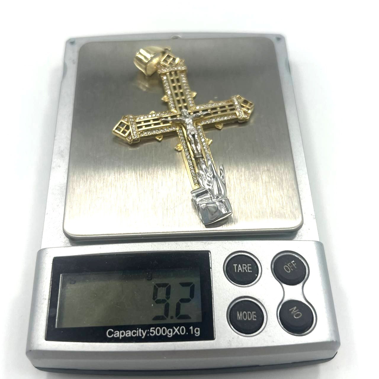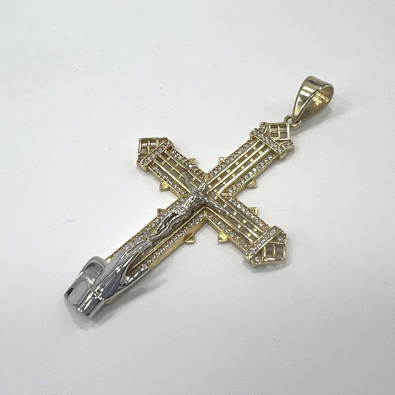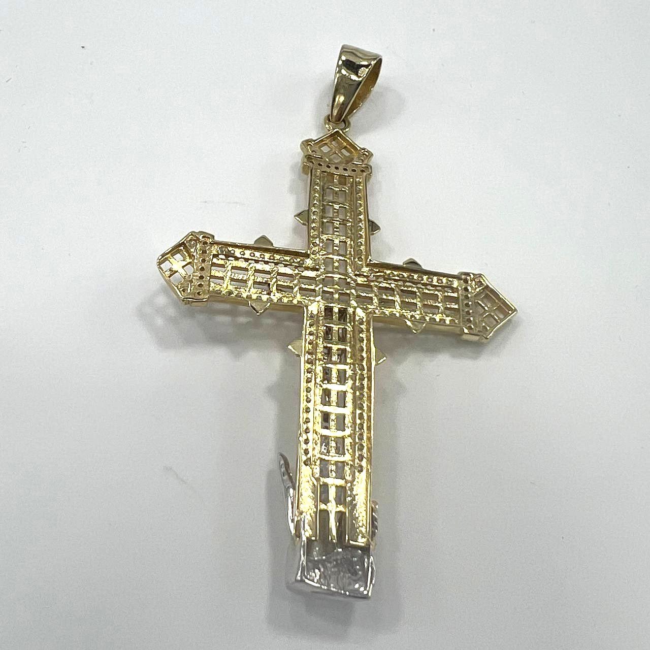 This remarkable 14K yellow and white gold pendant showcases a bold cross design embraced by a hand cuff that appears to be holding the cross, symbolizing strength, protection, and faith. The intricate craftsmanship blends elegance with powerful meaning, making it far more than just an accessory—it is a statement of devotion and style. Perfect for those seeking a distinctive piece with depth and symbolism, this pendant is a timeless treasure that embodies both beauty and significance