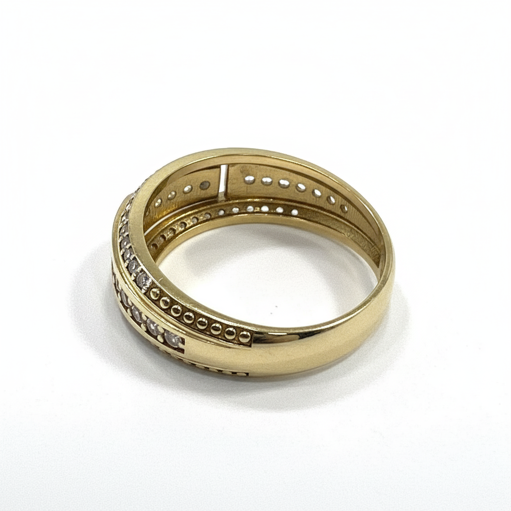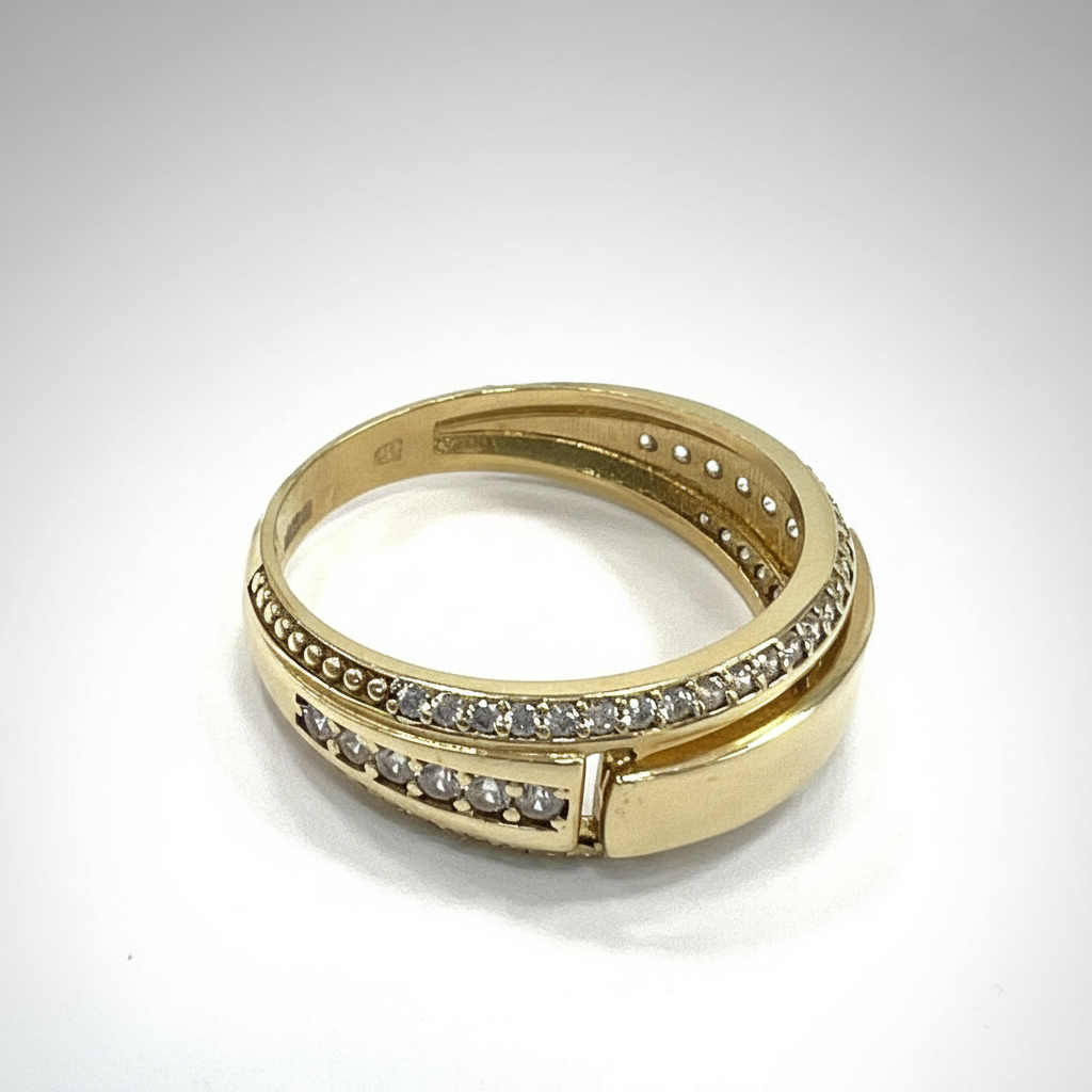Ring in 14K Yellow Gold — Dual-Band Pavé & Polished Design | New size 8