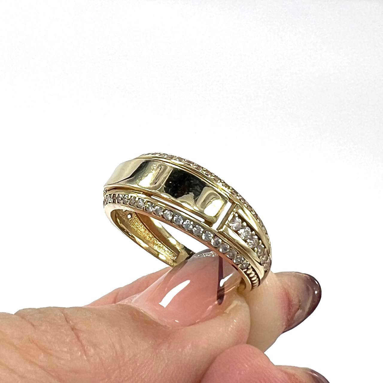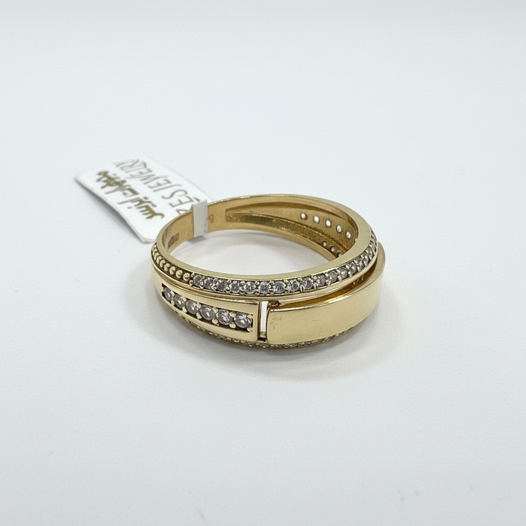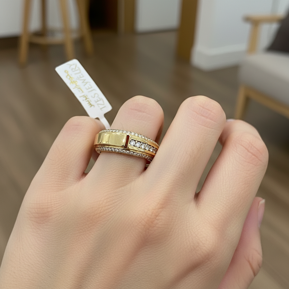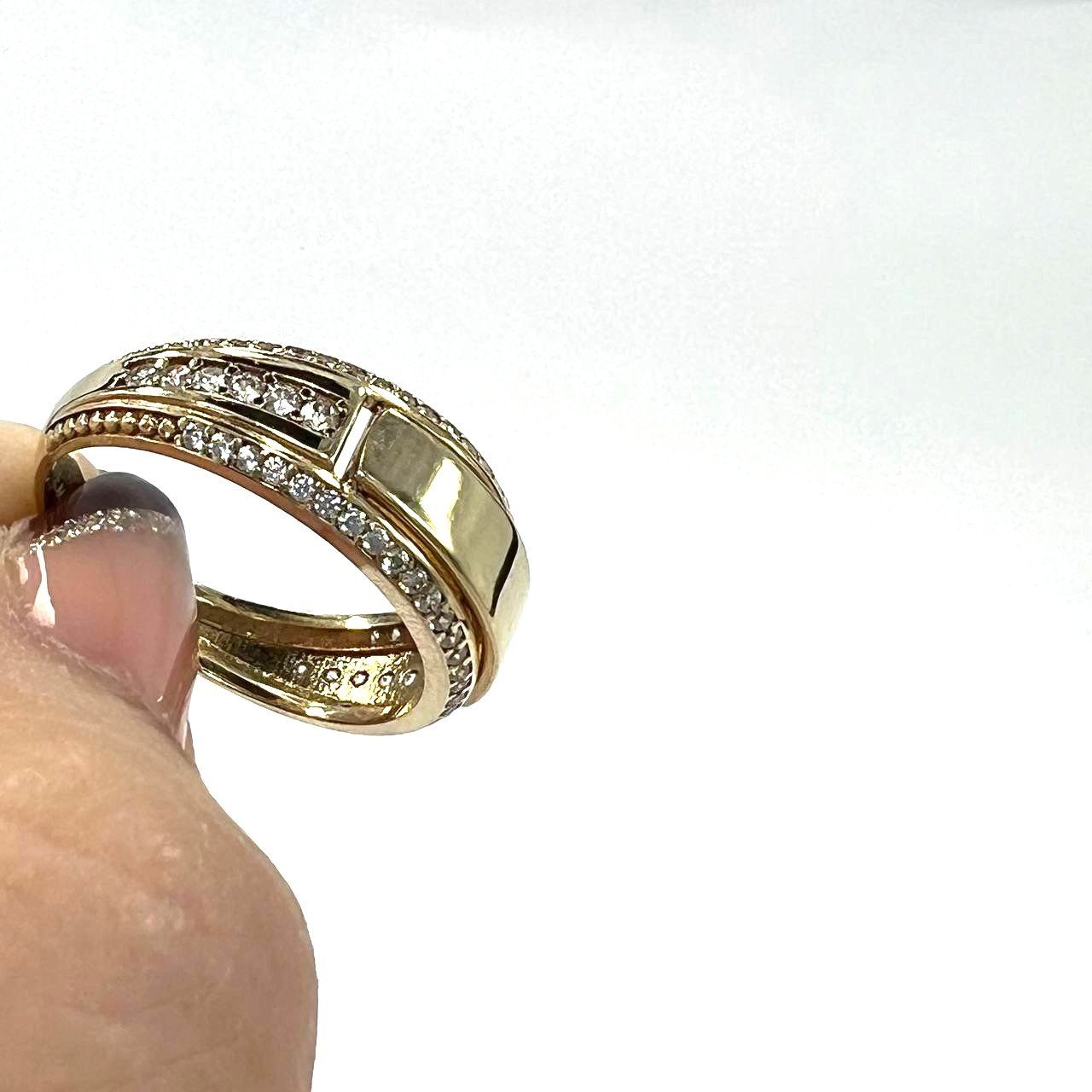 Discover the beauty of this 14K Yellow Gold Dual-Band Pavé Ring, crafted from solid 14K yellow gold with exceptional craftsmanship and refined design. This elegant piece features a stunning dual-band illusion – one polished, mirror-finish gold band with sculpted geometric details and another sparkling pavé band set with high-quality cubic zirconia stones for maximum brilliance, making it perfect for daily wear, special occasions, or a meaningful gift. Combining timeless charm with modern elegance, it adds a sophisticated touch to any look.