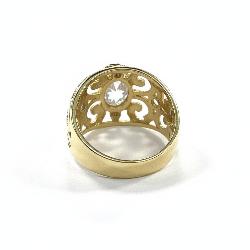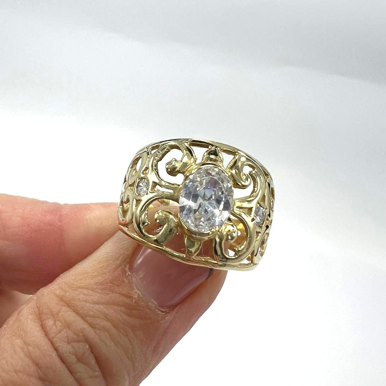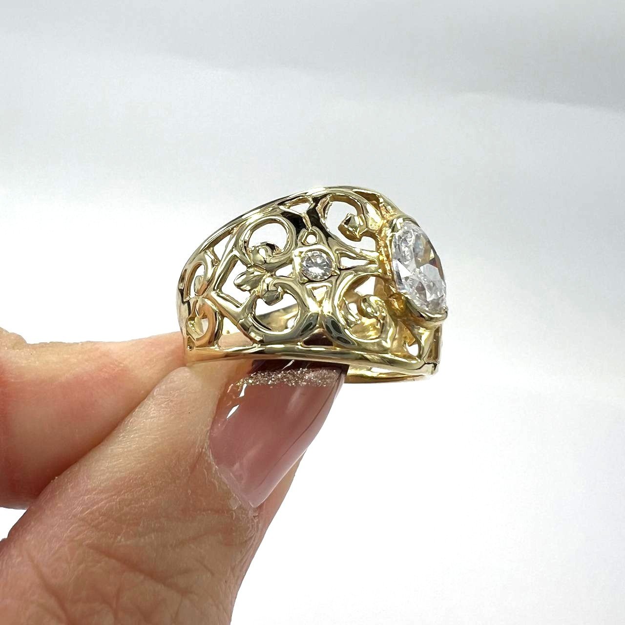 14K Yellow Gold Filigree Ring — Oval CZ Center Stone | New Condition size 8