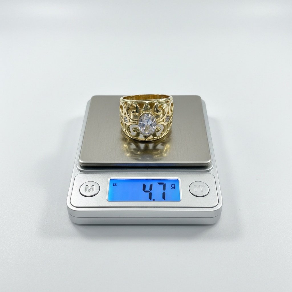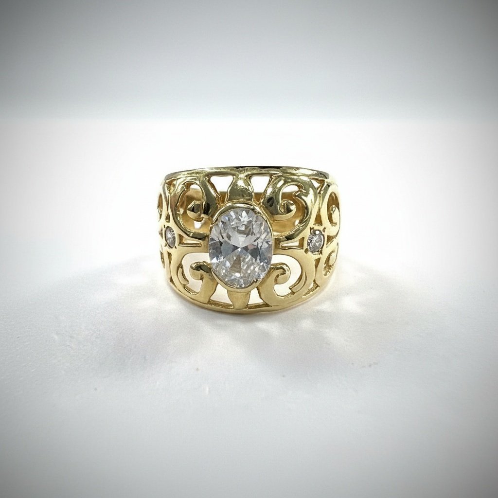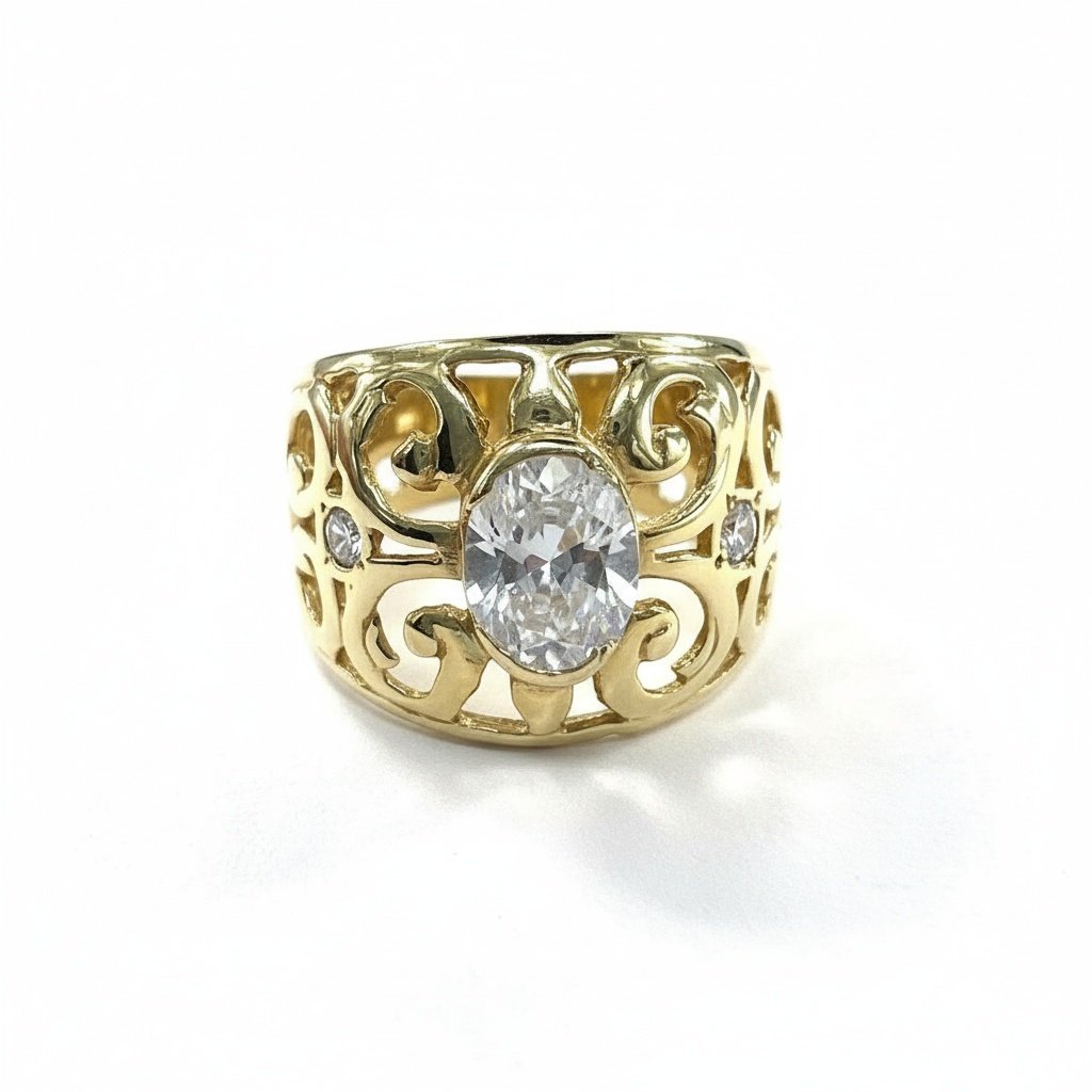 14K Yellow Gold Filigree Ring — Oval CZ Center Stone | New Condition size 8