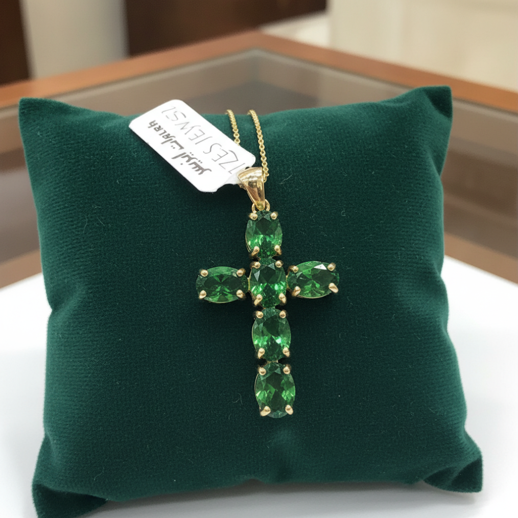 Discover the beauty of this 14K Yellow Gold Cross Pendant, crafted from 14K Yellow Gold with exceptional craftsmanship and refined design. This elegant piece features vivid green Cubic Zirconia stones arranged in a graceful marquise cut, creating a captivating play of light and intensity from every angle. Combining timeless charm with modern elegance, it adds a sophisticated touch to any look, making it perfect for everyday wear or a thoughtful gift.