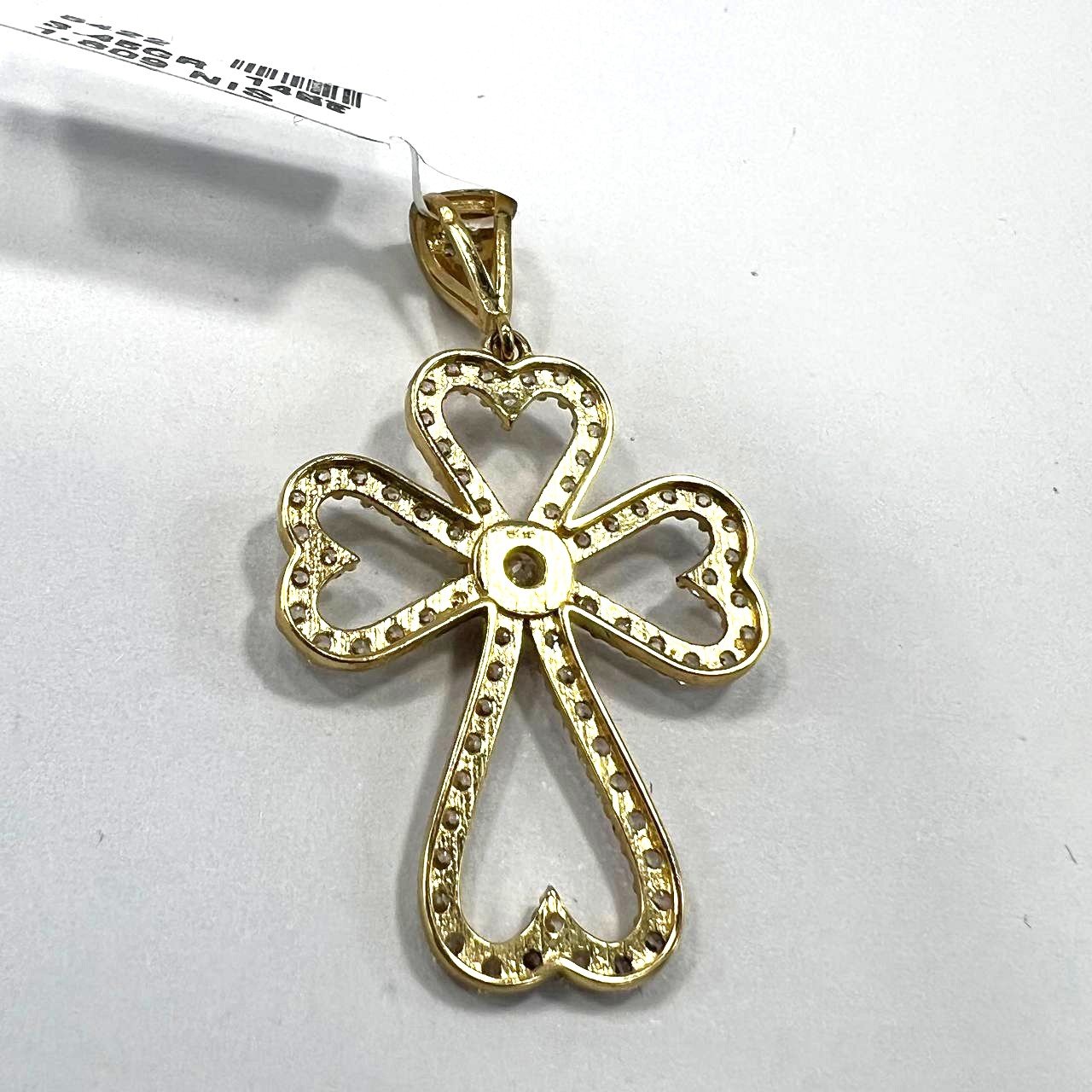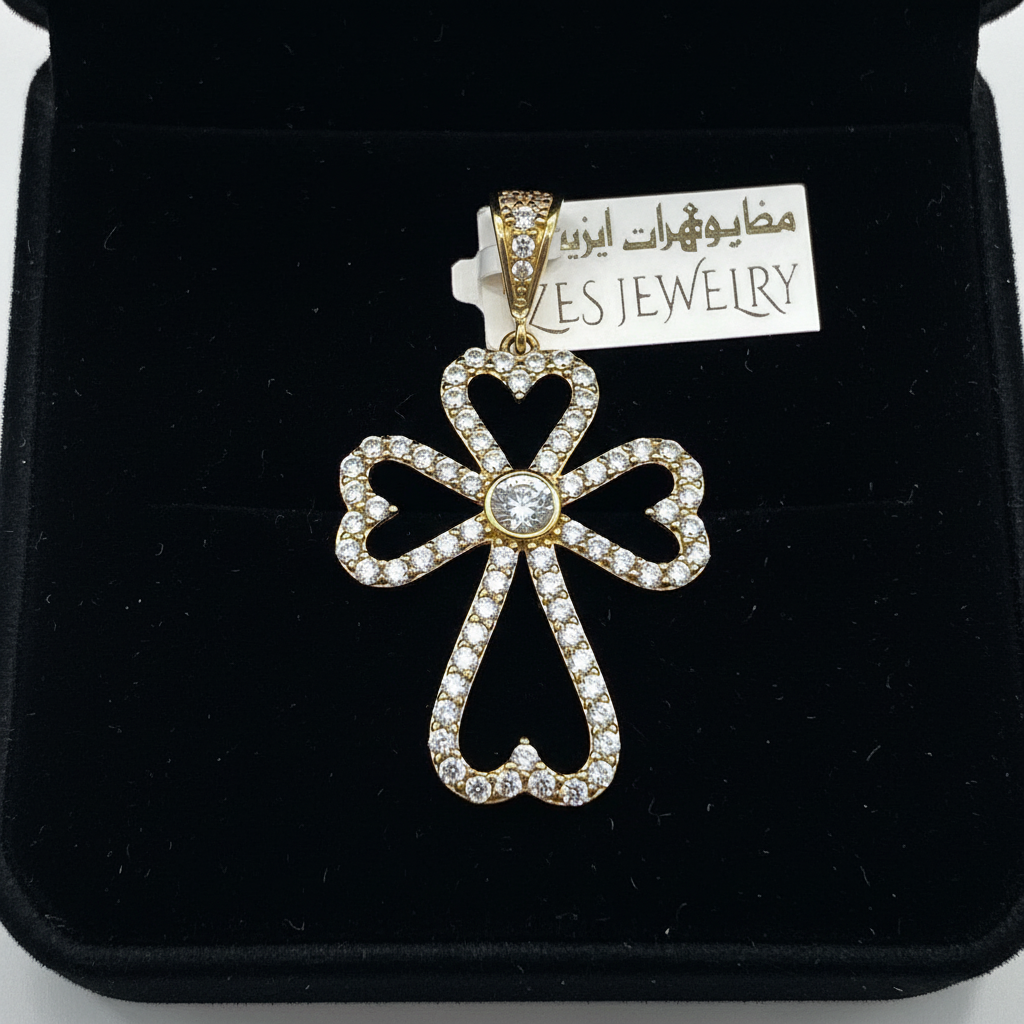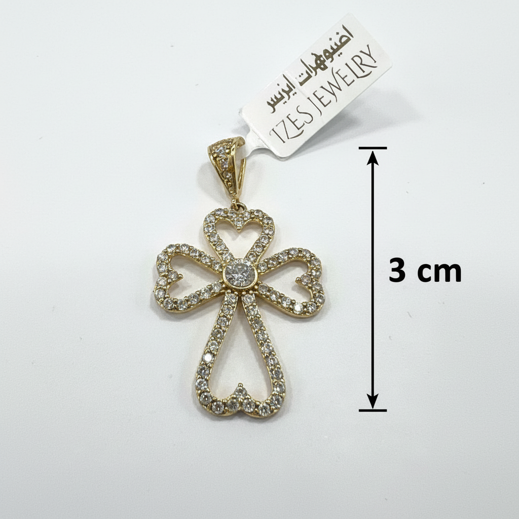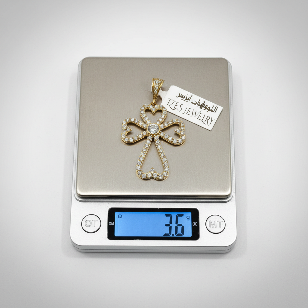 Cross Pendant in 14K Yellow Gold — Heart-Shaped Design with Sparkling Stones | New
