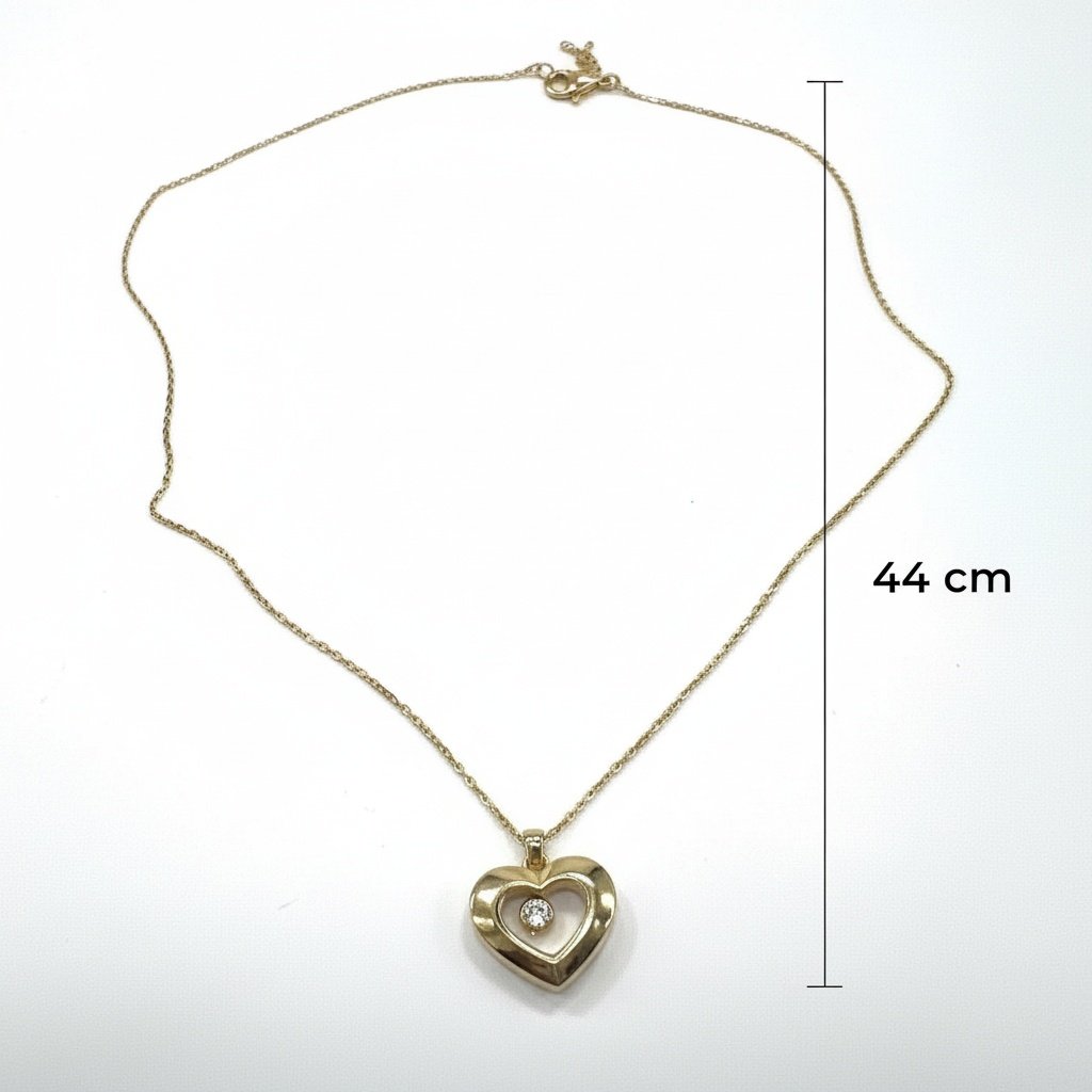 The centerpiece is an enchanting open-heart pendant, featuring a dazzling sparkling cubic zirconia (CZ) delicately set at its core. This brilliant stone radiates warmth and brilliance with every movement, creating an eye-catching focal point. Its polished finish enhances the natural glow of the 14K gold, adding a sophisticated touch to any ensemble.