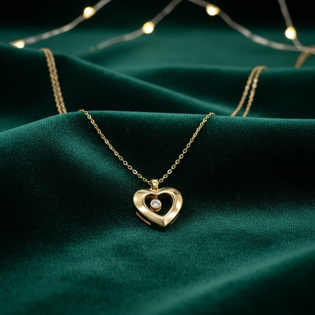 - Elegant open-heart pendant design with a luxurious polished finish.