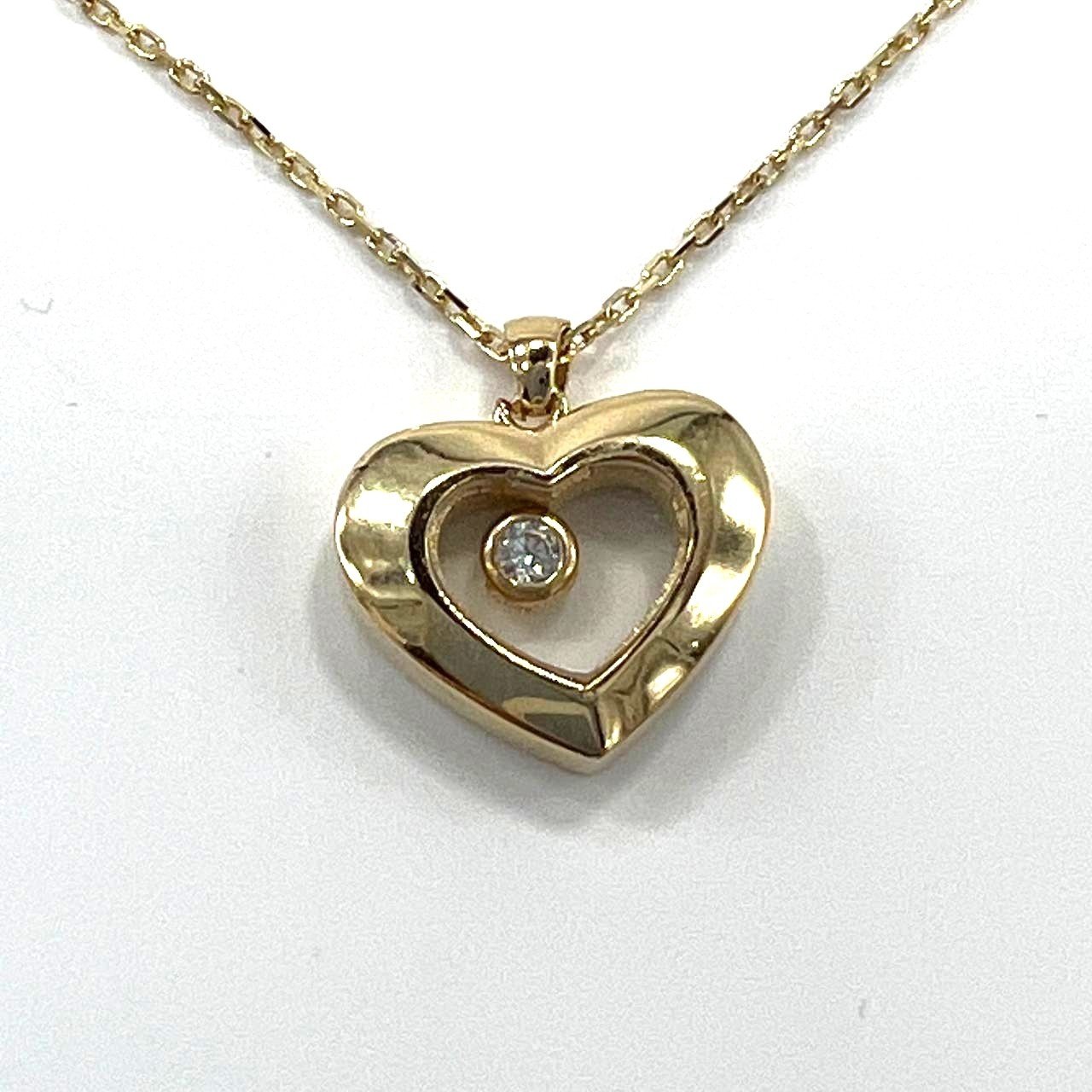 14K Yellow Gold Heart Necklace — Open Heart with Sparkling CZ