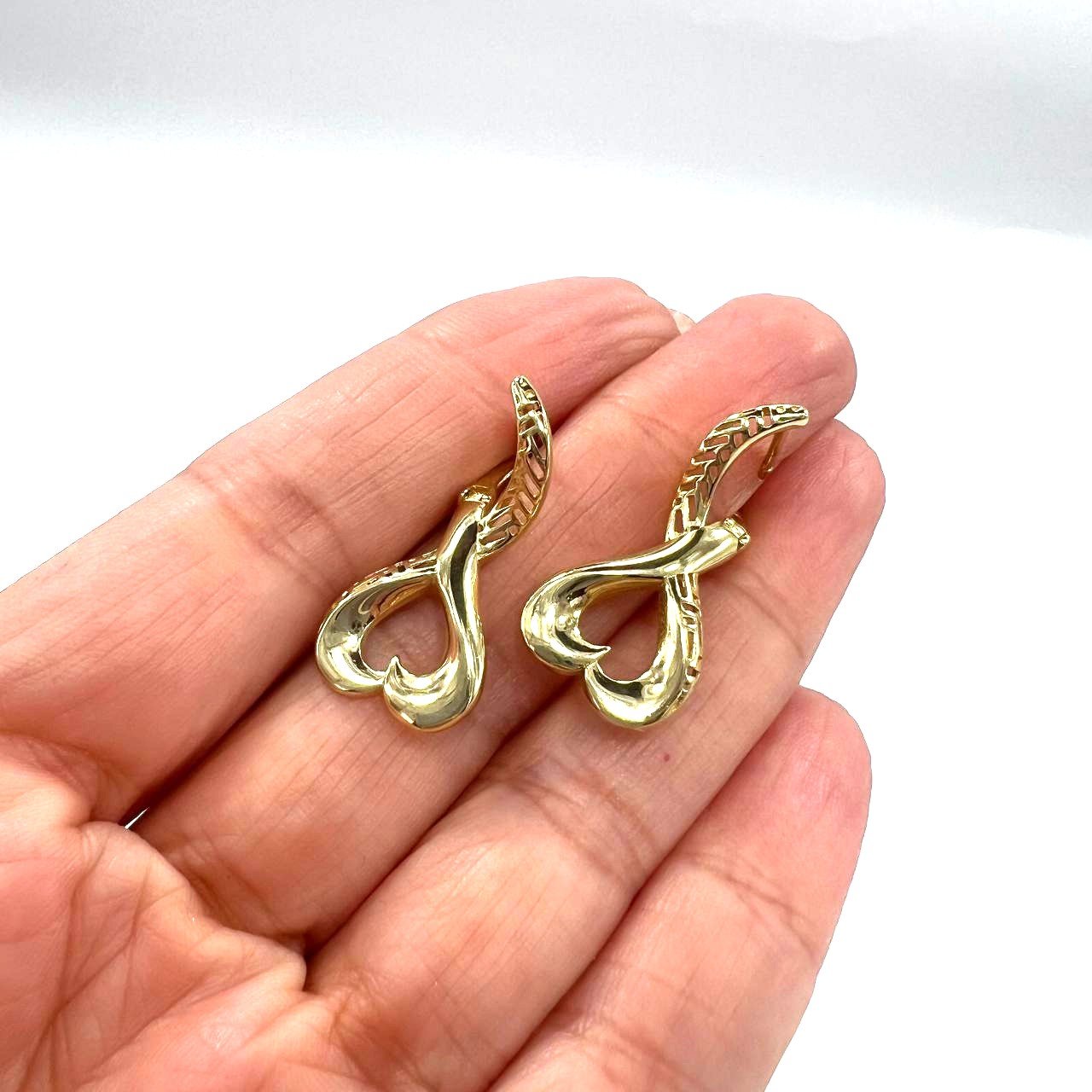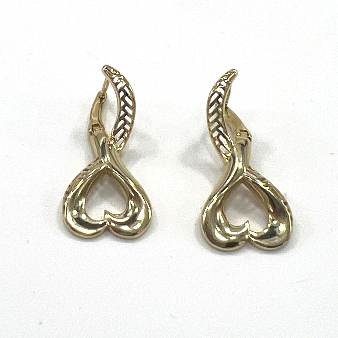 14K yellow gold heart-shaped earrings with a unique and elegant design
