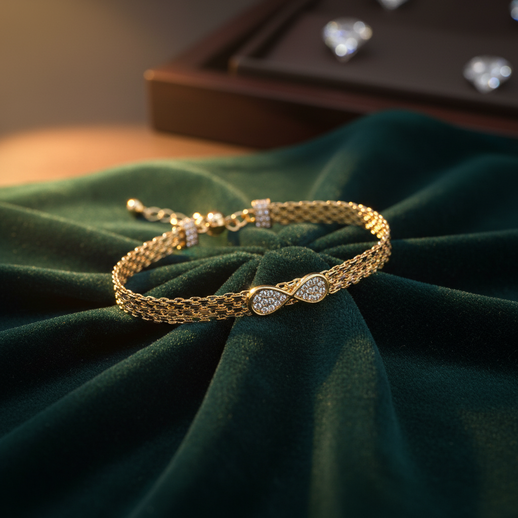 Discover the beauty of this **14K Yellow Gold Infinity Triple Chain Bracelet**, crafted from **14K yellow gold** with exceptional craftsmanship and refined design. This elegant piece features a **shimmering infinity symbol** beautifully accented with **sparkling zircon stones**, making it perfect for **everyday wear**, **special occasions**, or as a **meaningful gift**. Combining timeless charm with modern elegance, it adds a sophisticated touch to any look, symbolizing **endless love, strength, and connection**.
