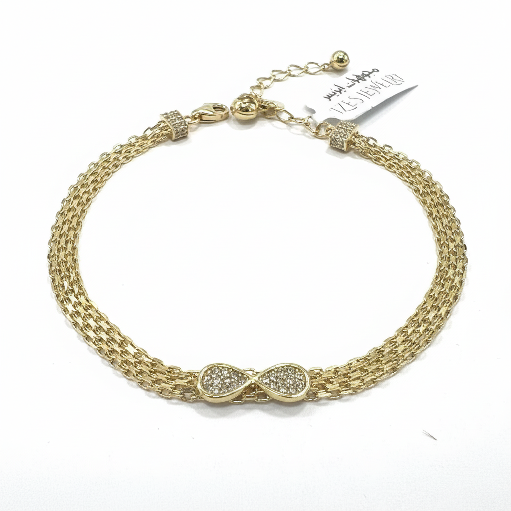 14K Yellow Gold Infinity Triple Chain Zircon Bracelet