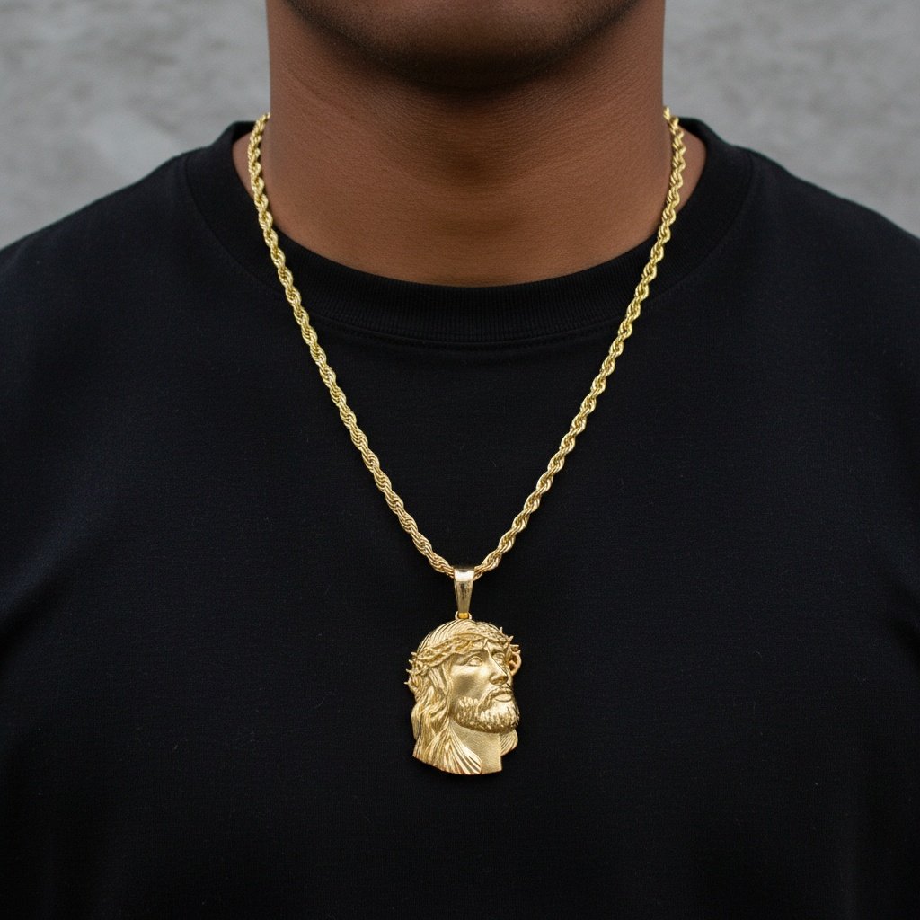 Discover the beauty of this exquisite 14K Yellow Gold Jesus Christ Crown Thorns Pendant, crafted with exceptional craftsmanship and refined design. This elegant piece features a finely detailed depiction of Jesus Christ crowned with thorns, symbolizing sacrifice, compassion, and divine love, making it perfect for a meaningful gift, a statement of faith, or a daily blessing. Combining timeless charm with modern elegance, it adds a sophisticated touch to any look.