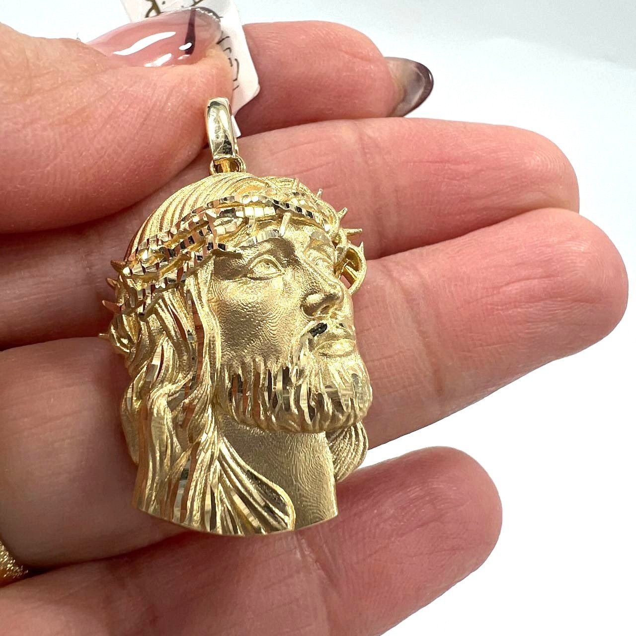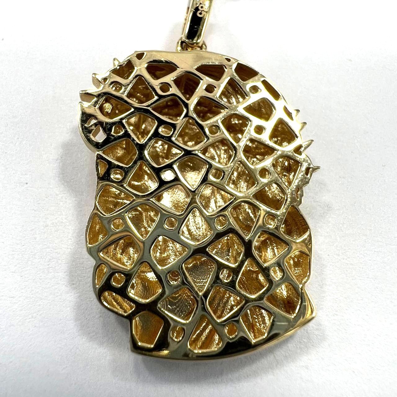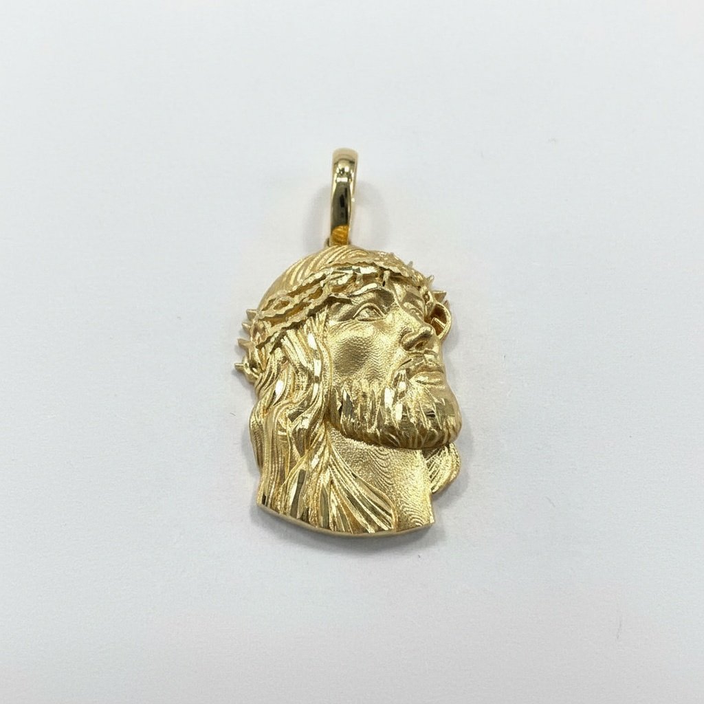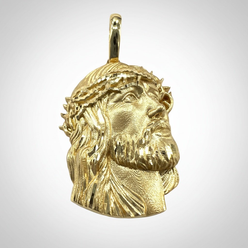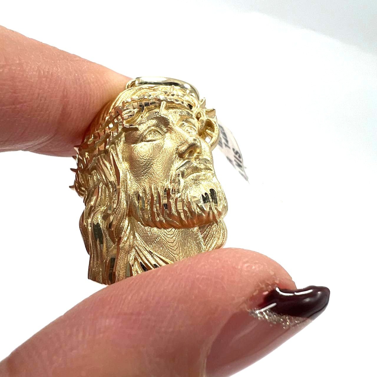 14K Yellow Gold Jesus Christ Crown Thorns Pendant — Finely Detailed Religious Charm | New