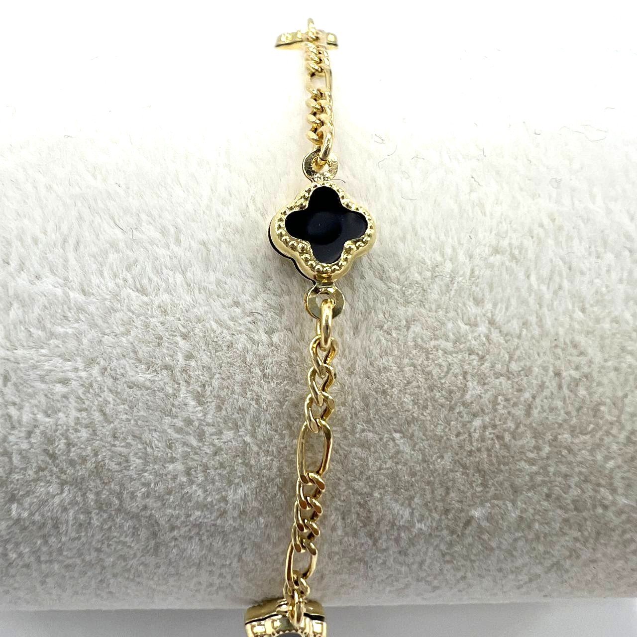 14K Yellow Gold Kids’ Bracelet with Black Van Cleef Design – Stylish and Unique
