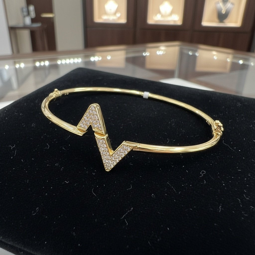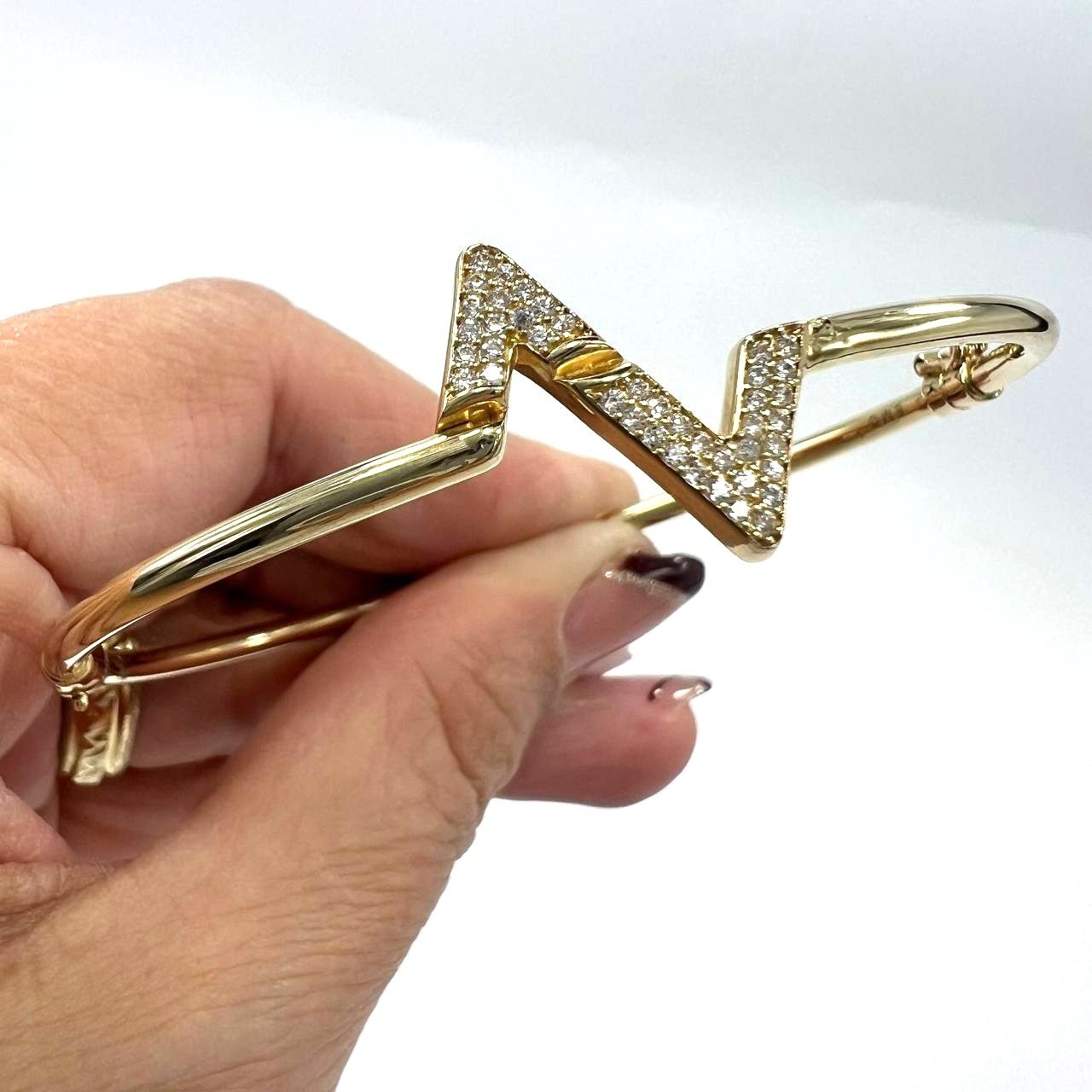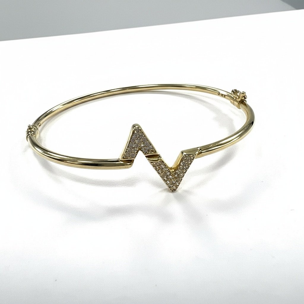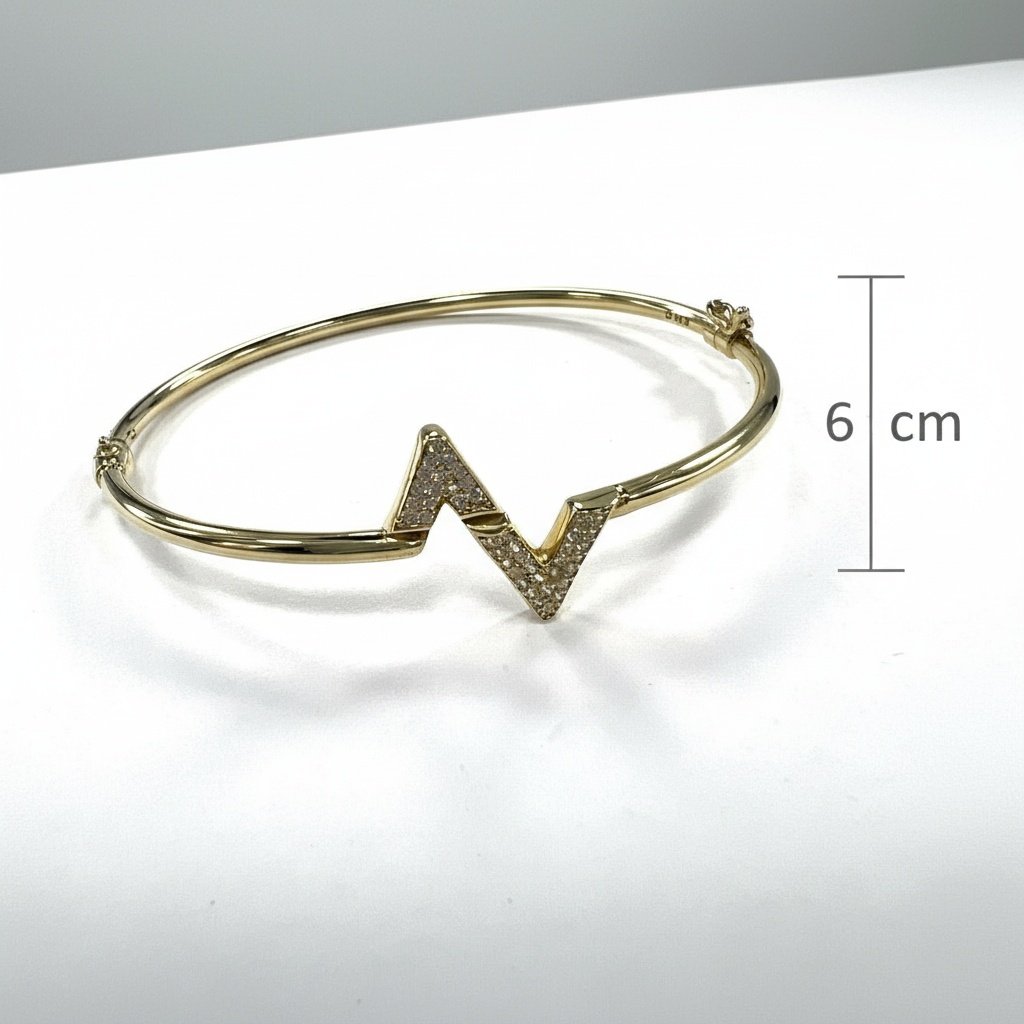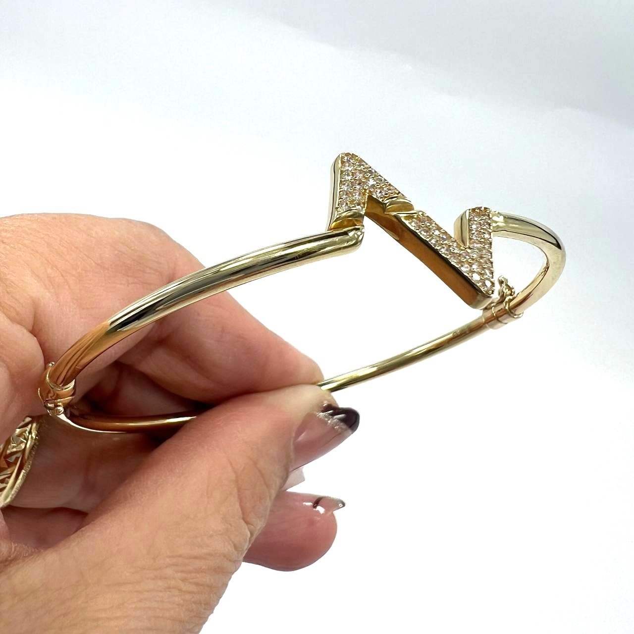 Discover the beauty of this 14K Yellow Gold Lightning Bolt Bracelet, crafted from solid 14K yellow gold with exceptional craftsmanship and a striking, refined design. This elegant piece features a sparkling lightning-bolt design fully encrusted with premium cubic zirconia stones (not diamonds), giving it a radiant brilliance that instantly stands out. The polished gold band adds a sleek, modern finish, making this piece the perfect blend of elegance and bold style, ideal for both everyday fashion and special occasions or as a meaningful gift. Combining timeless charm with modern elegance, it adds a sophisticated touch to any look, reflecting strength, style, and confidence.