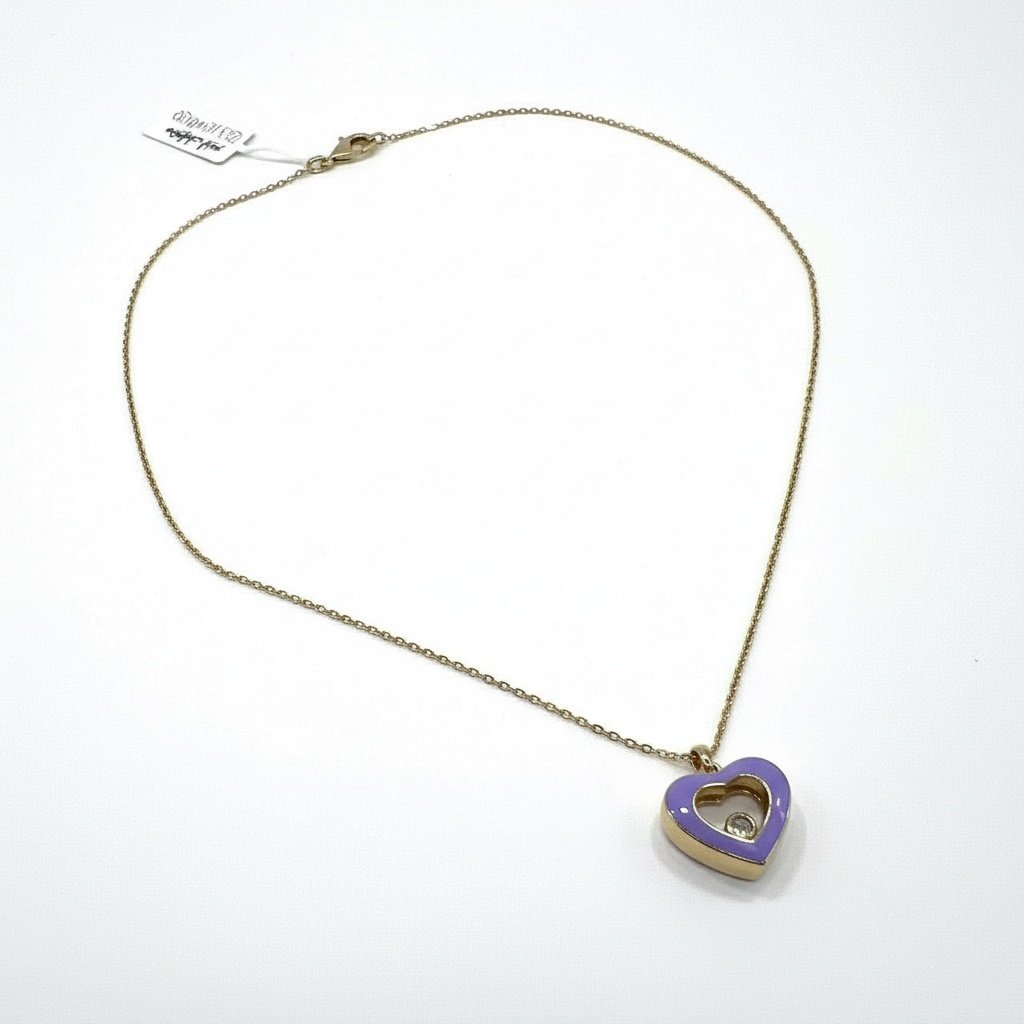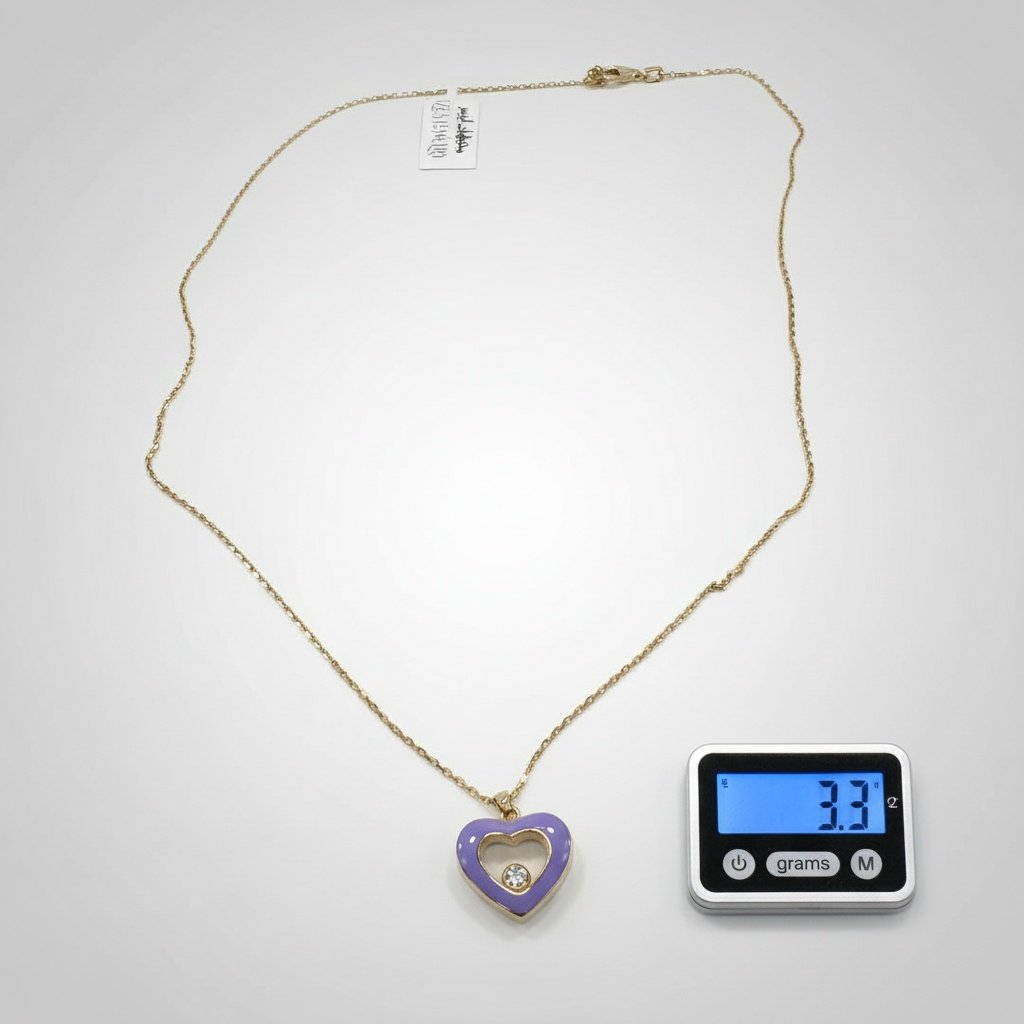 Exquisite 14K Yellow Gold Lilac Enamel Heart Necklace with Diamond Accent