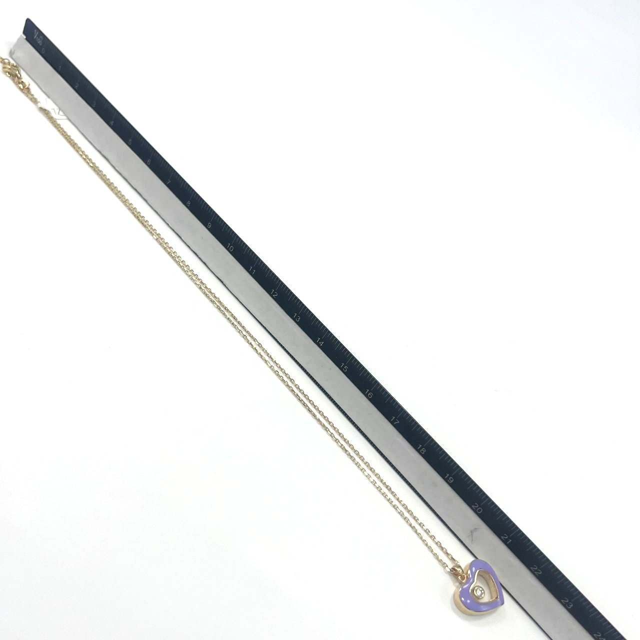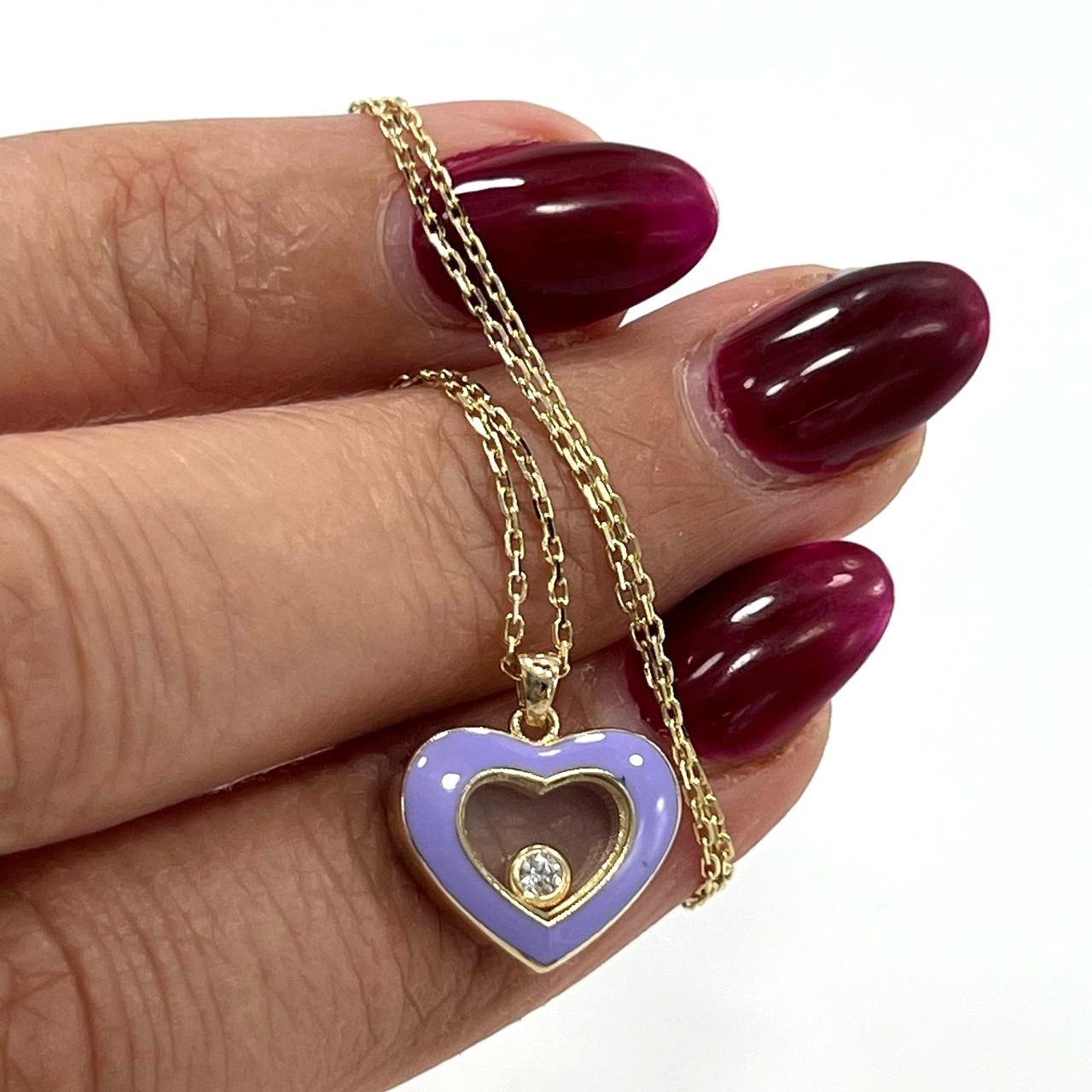 14K Yellow Gold Lilac Enamel Heart Necklace Diamond Accent Pendant TCY Jewelry G