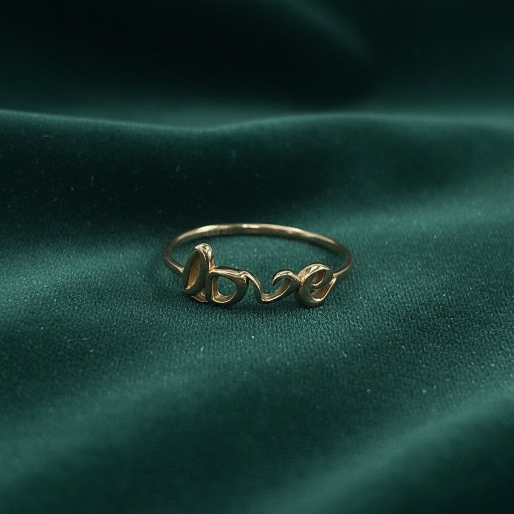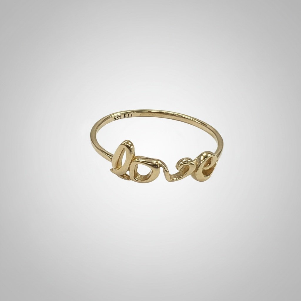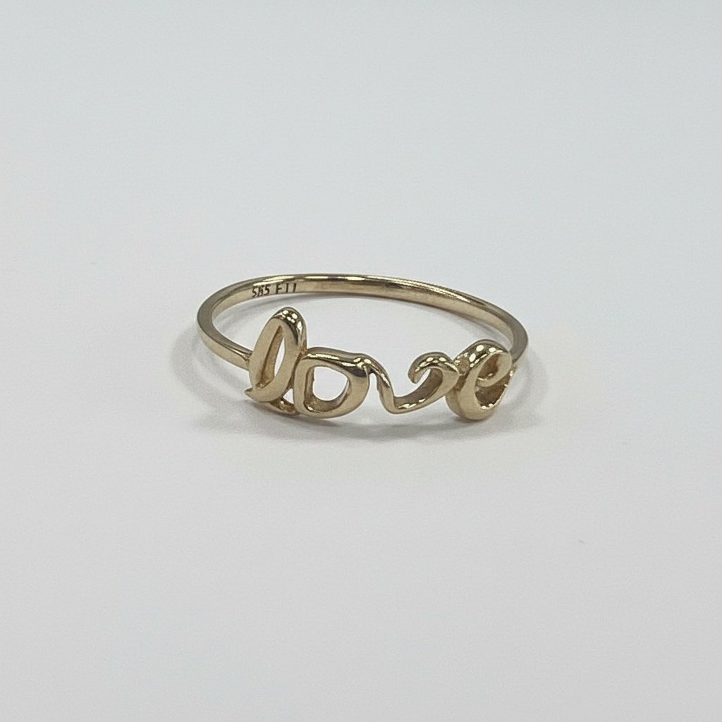 14K Yellow Gold LOVE Script Ring Women’s Size 7 Modern Romantic Dainty Fine Jewelry