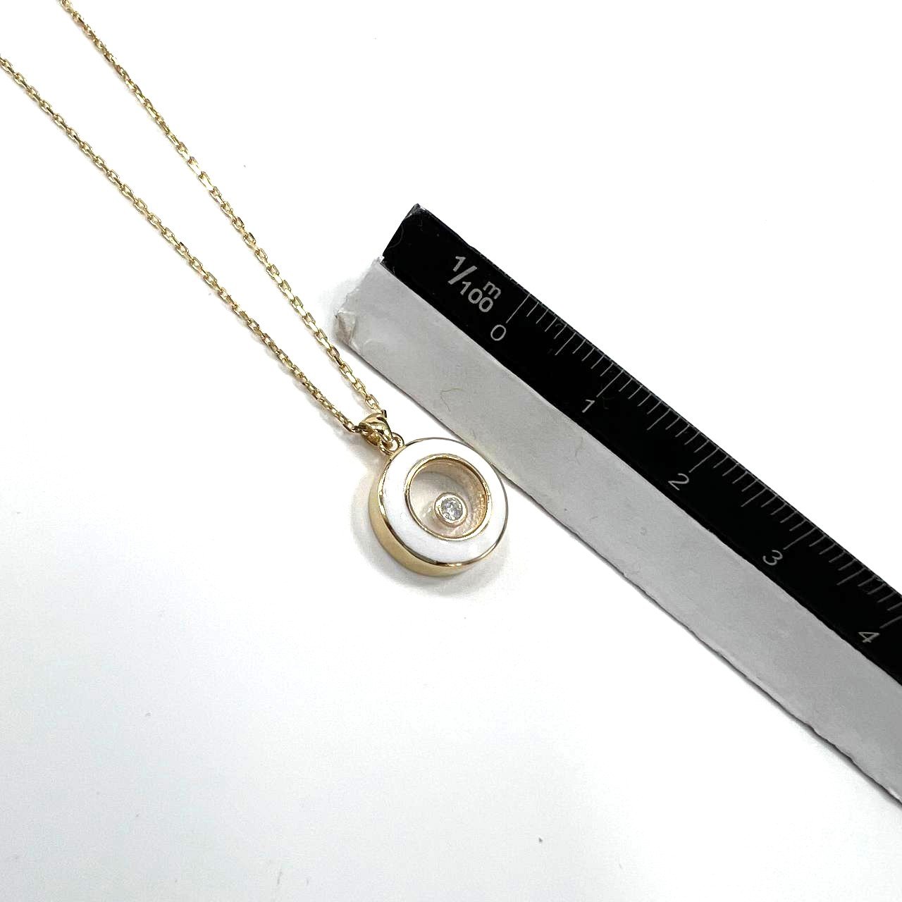 14K Yellow Gold Necklace in White Enamel & CZ | New