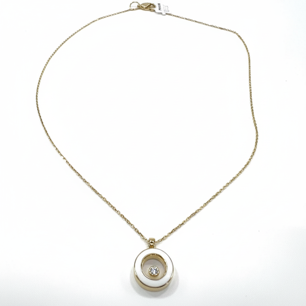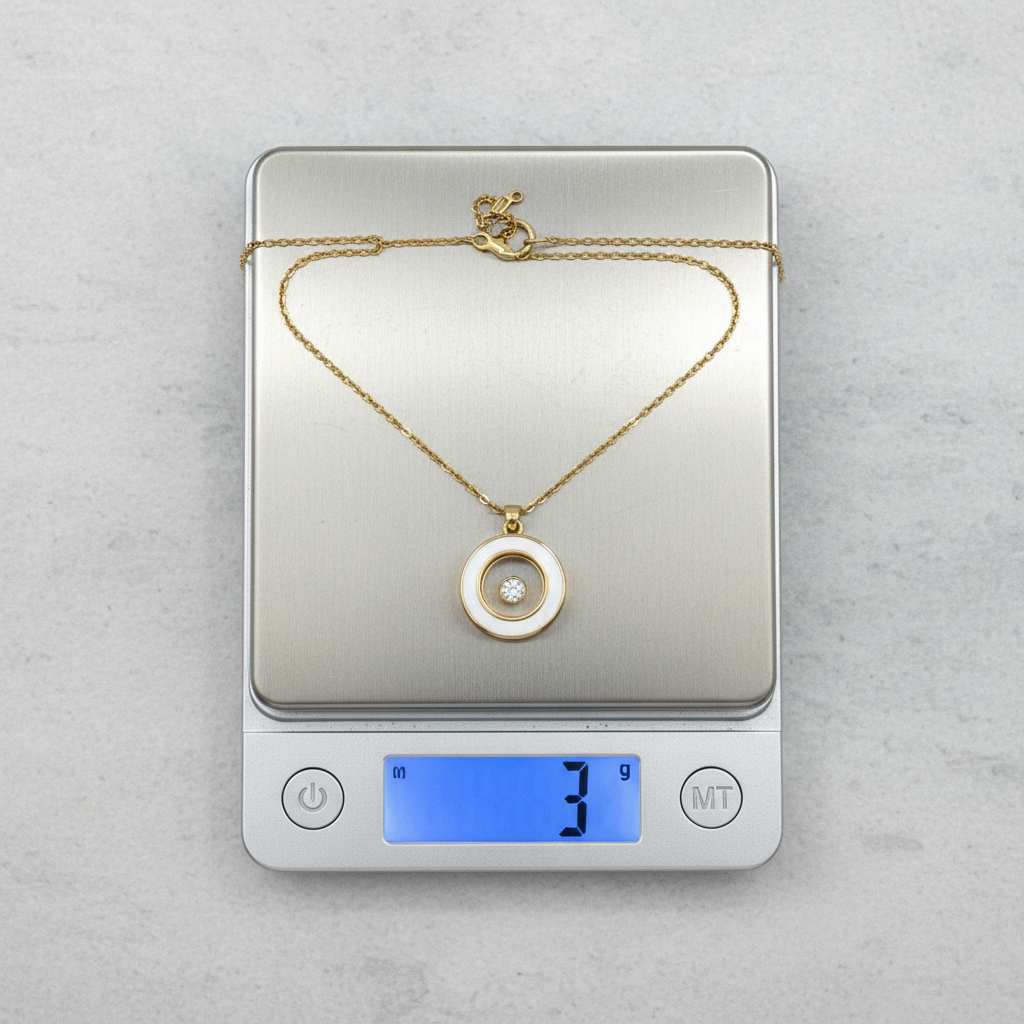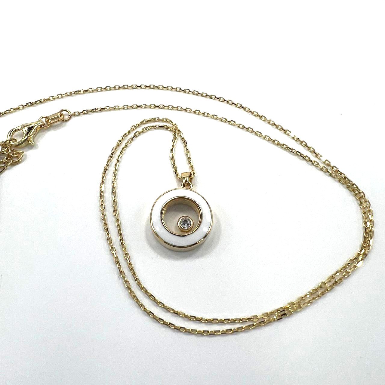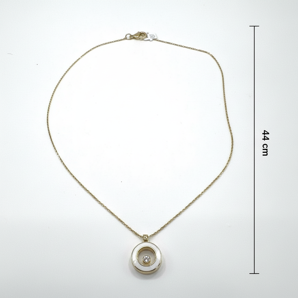 Discover the beauty of this elegant circular pendant necklace, crafted from 14K yellow gold with exceptional craftsmanship and refined design. This elegant piece features a smooth circular pendant in pristine white enamel, centered with a brilliant cubic zirconia that catches every glimmer of light, making it perfect for both everyday elegance and special occasions or a meaningful gift. Combining timeless charm with modern elegance, it adds a sophisticated touch to any look, ideal for layering or wearing solo.