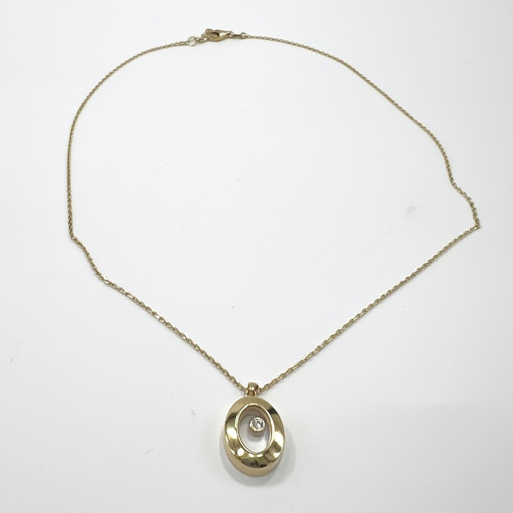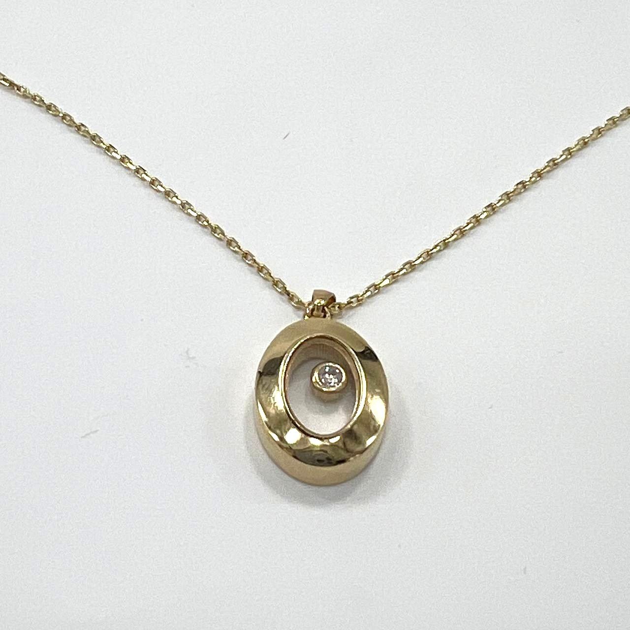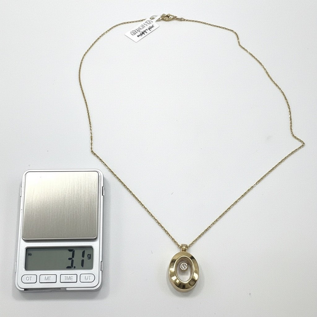 14K yellow gold necklace with elegant oval pendant and sparkling center stone