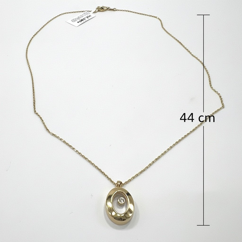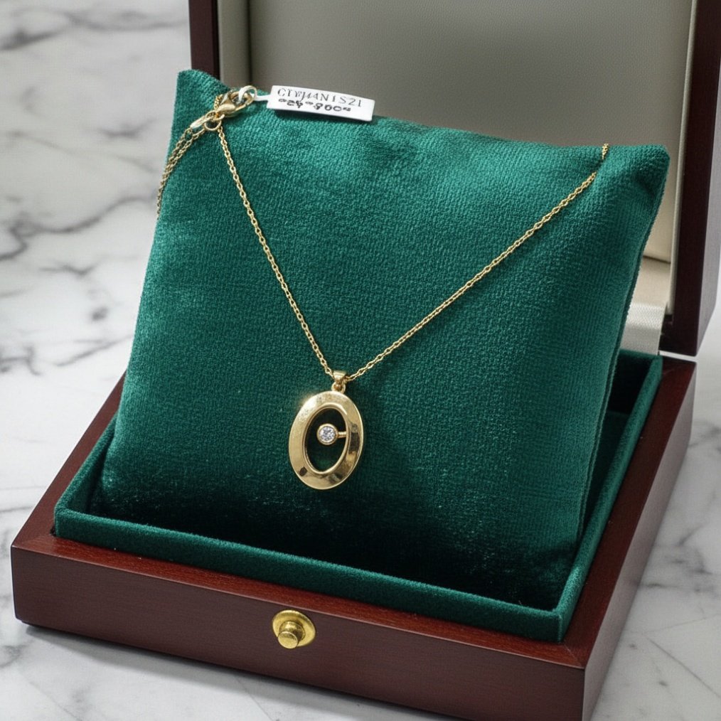 Elegant 14K Yellow Gold Necklace featuring a modern oval pendant with a sparkling center stone. The minimalist design blends timeless beauty with a touch of luxury, making it perfect for both everyday wear and special occasions. A symbol of elegance and refined taste — crafted to shine with every movement.