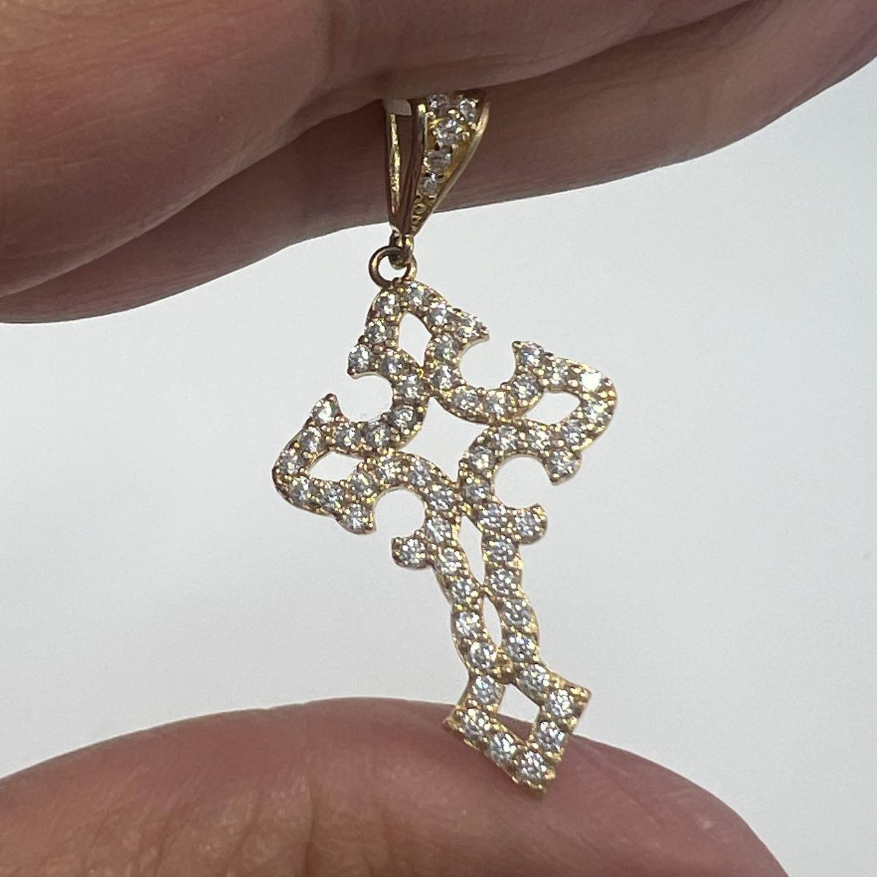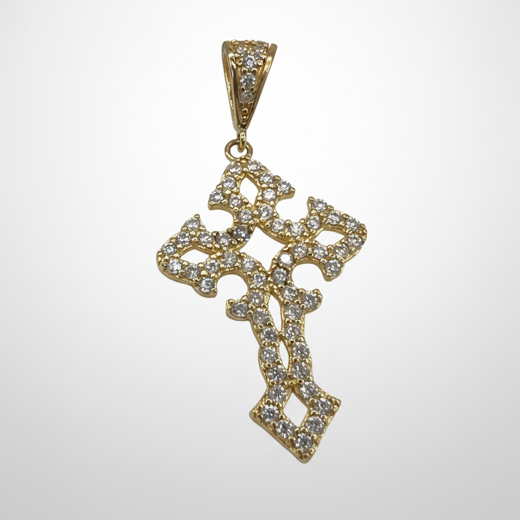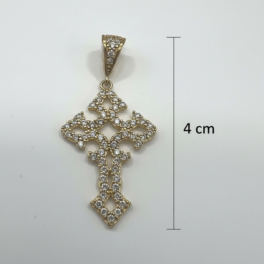 Ornamental Cross Pendant in 14K Yellow Gold — High-Brilliance CZ | New